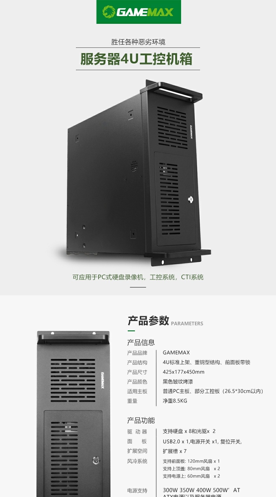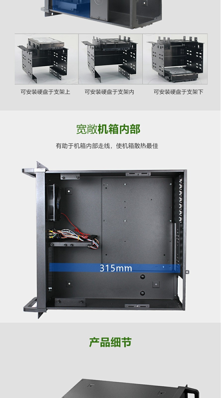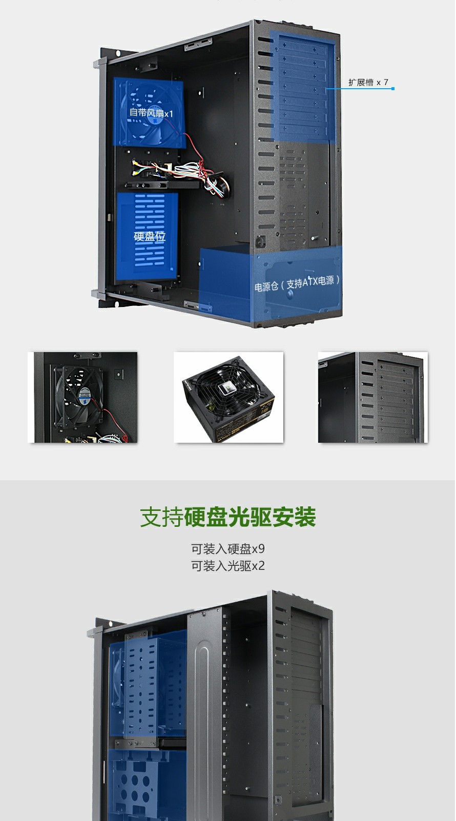 | 散热系统 | 前部可配12CM风扇*1(标配),后部:6CM风扇*2(选配) |