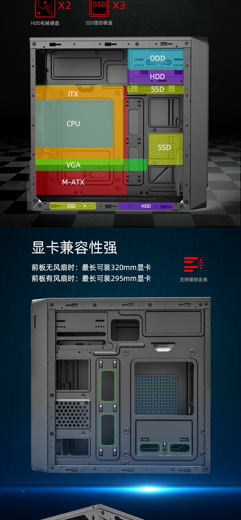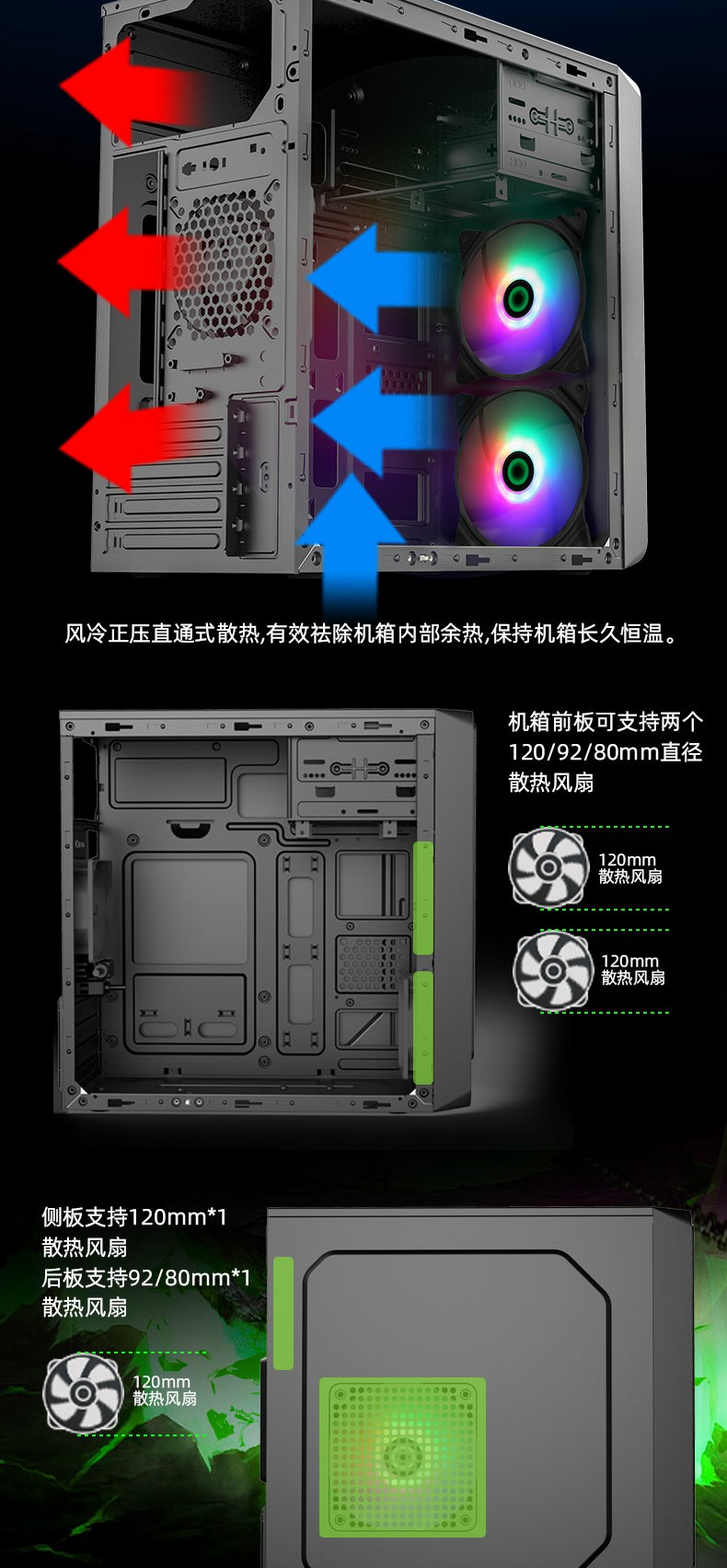 | 风冷 | 前板 | 2x120/92/80mm(选配) |