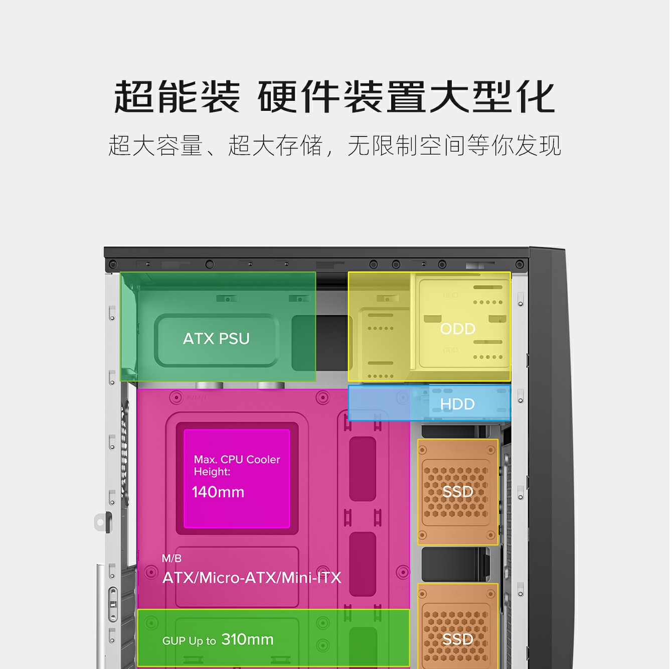| 机型 (Midi, Micro, Mini ITX, Full) | 中塔ATX机箱 | |