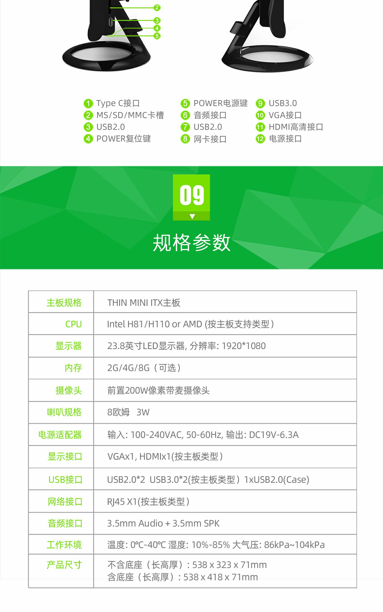 可选配内置Intel H81等其他Thin-Mini ITX 主板