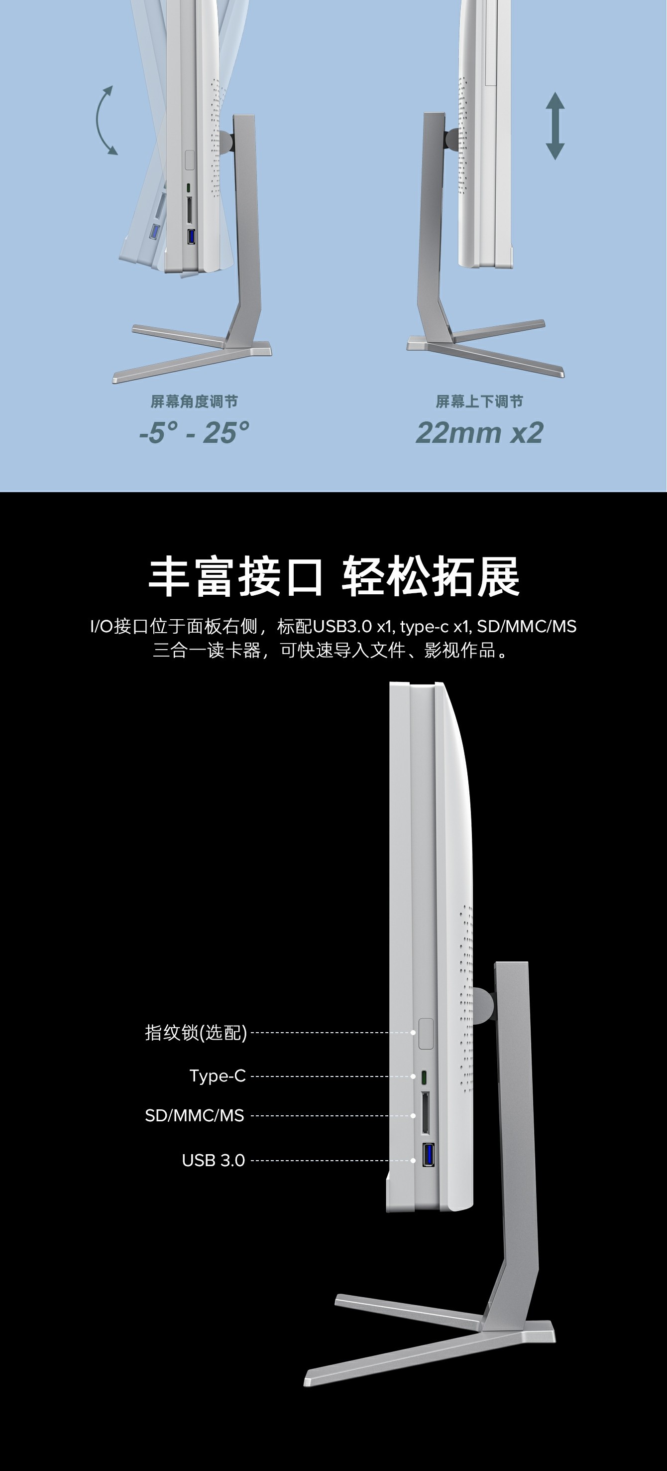 可调节支架:屏幕角度调节-5度至25度,上调高度22mm*2两个档位;