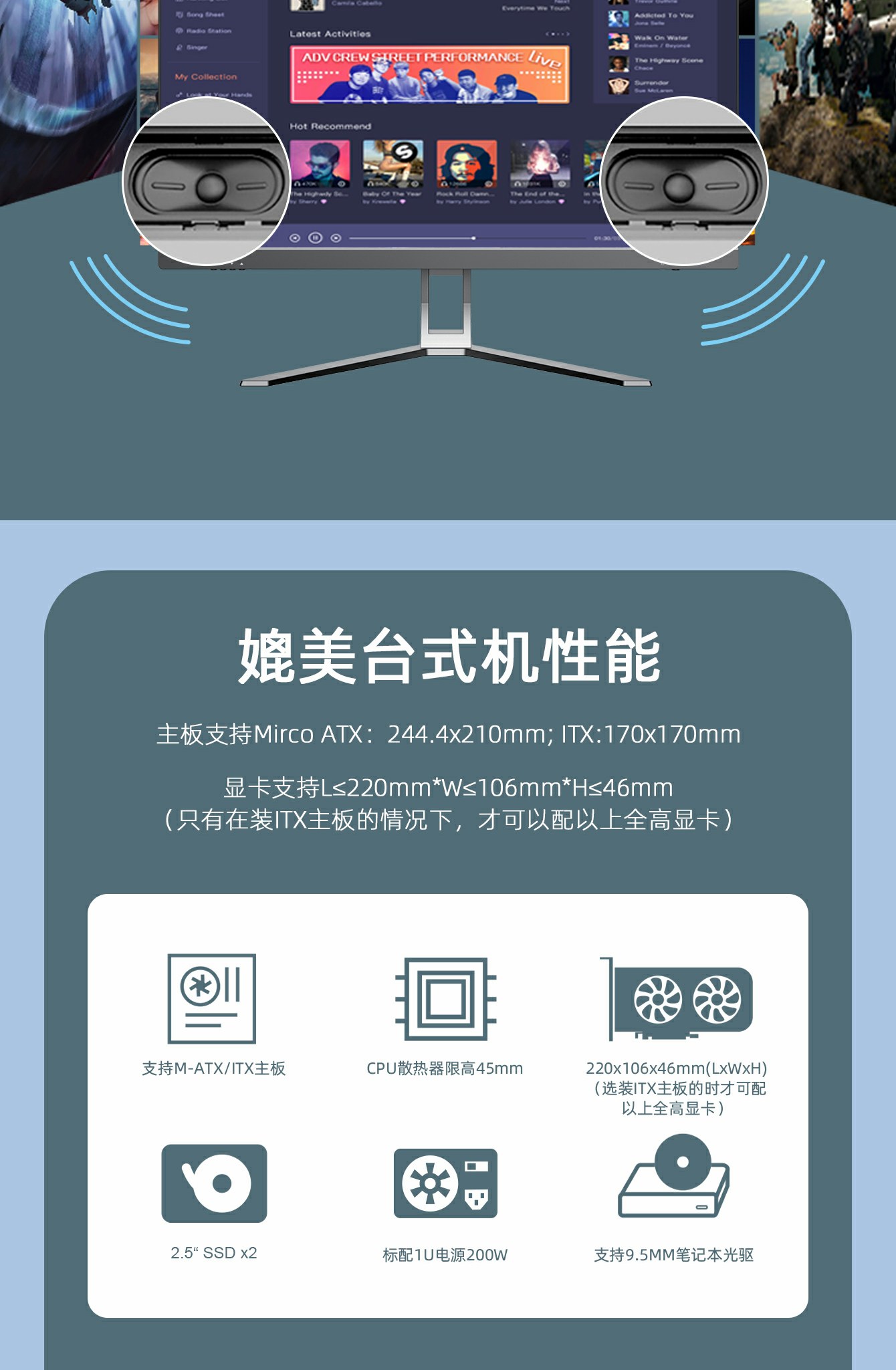 2.可选配Mirco ATX:245*220mm ITX:170*170mm