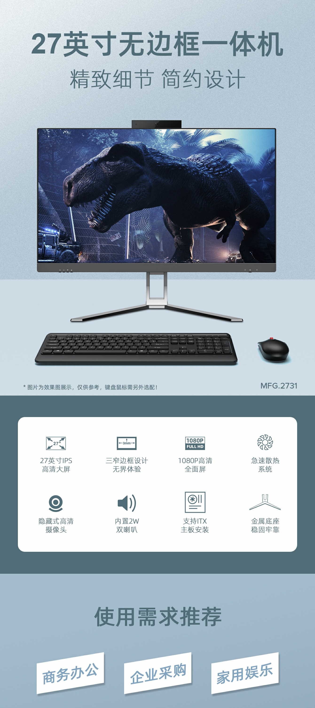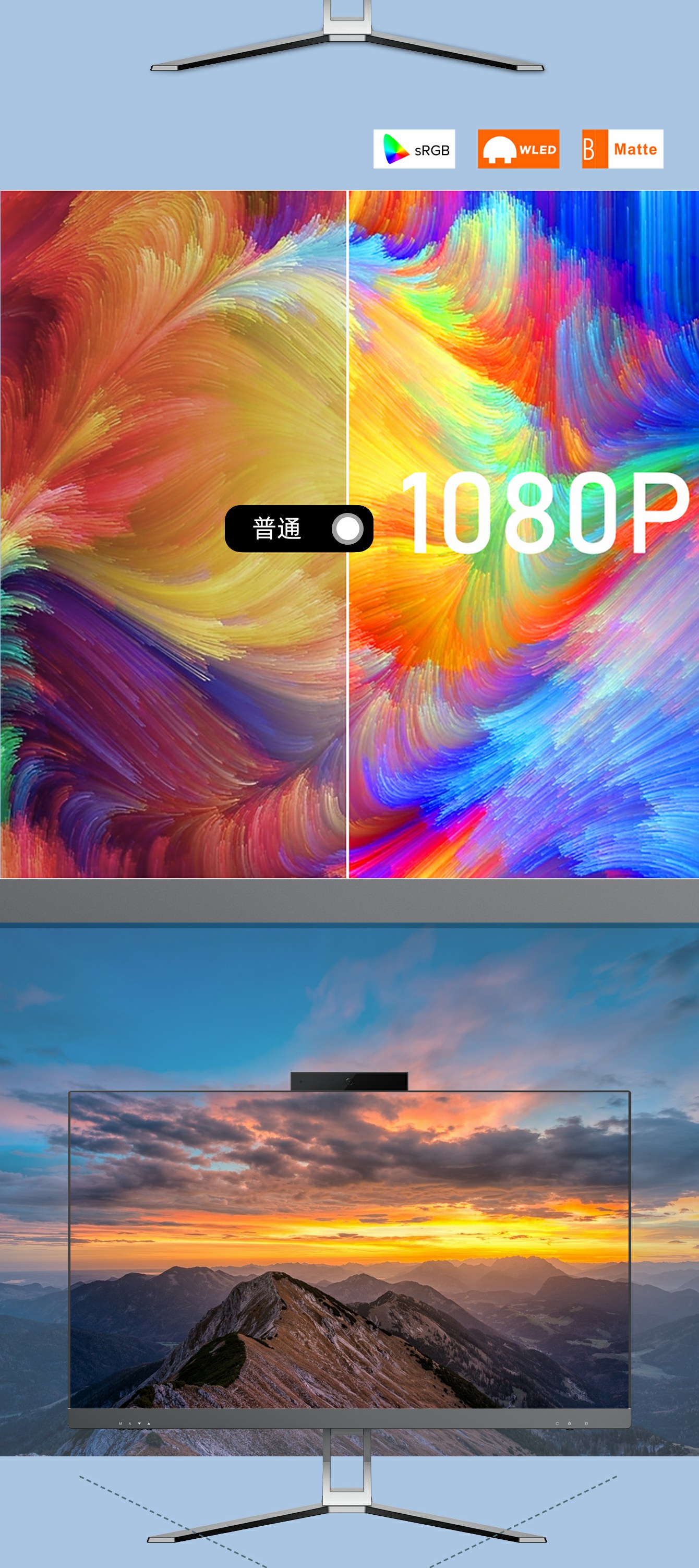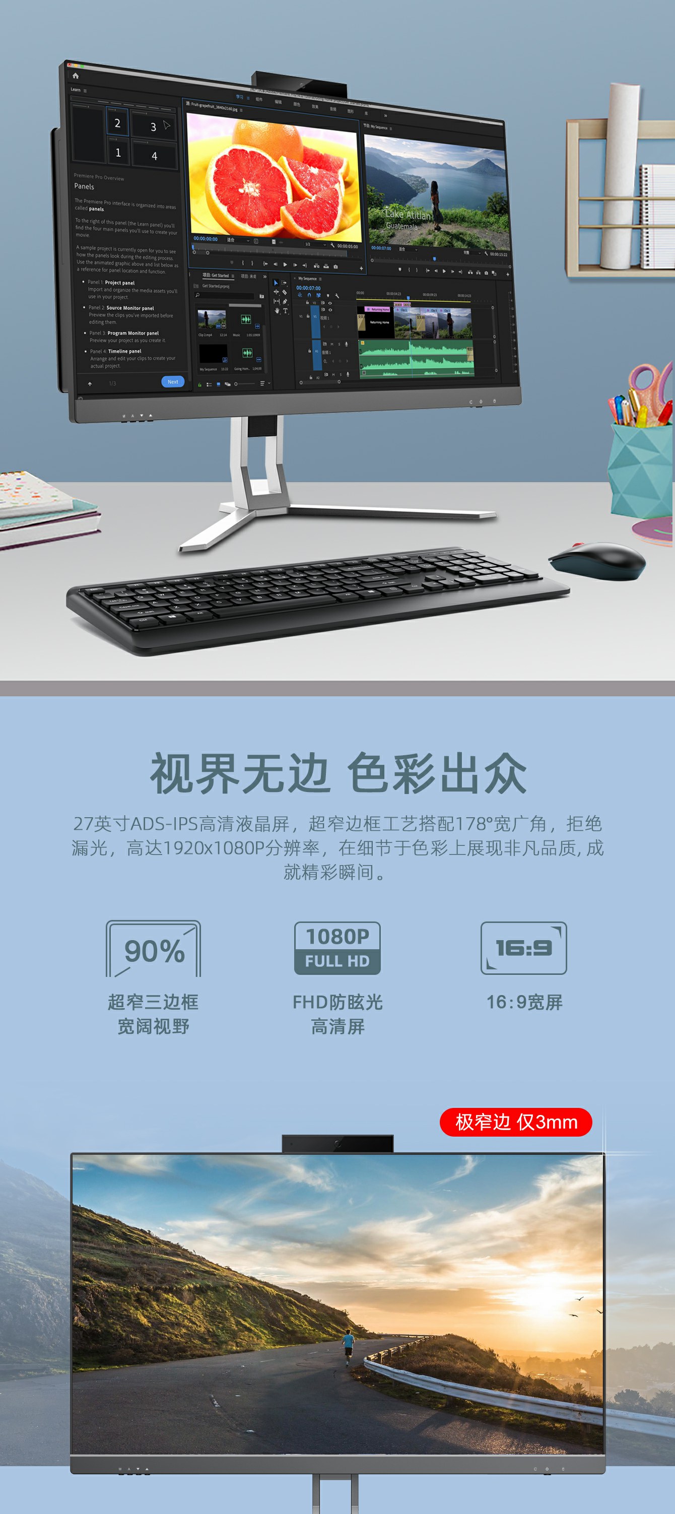1.无边框27英寸IPS或ADS高清液晶屏178度广视角.