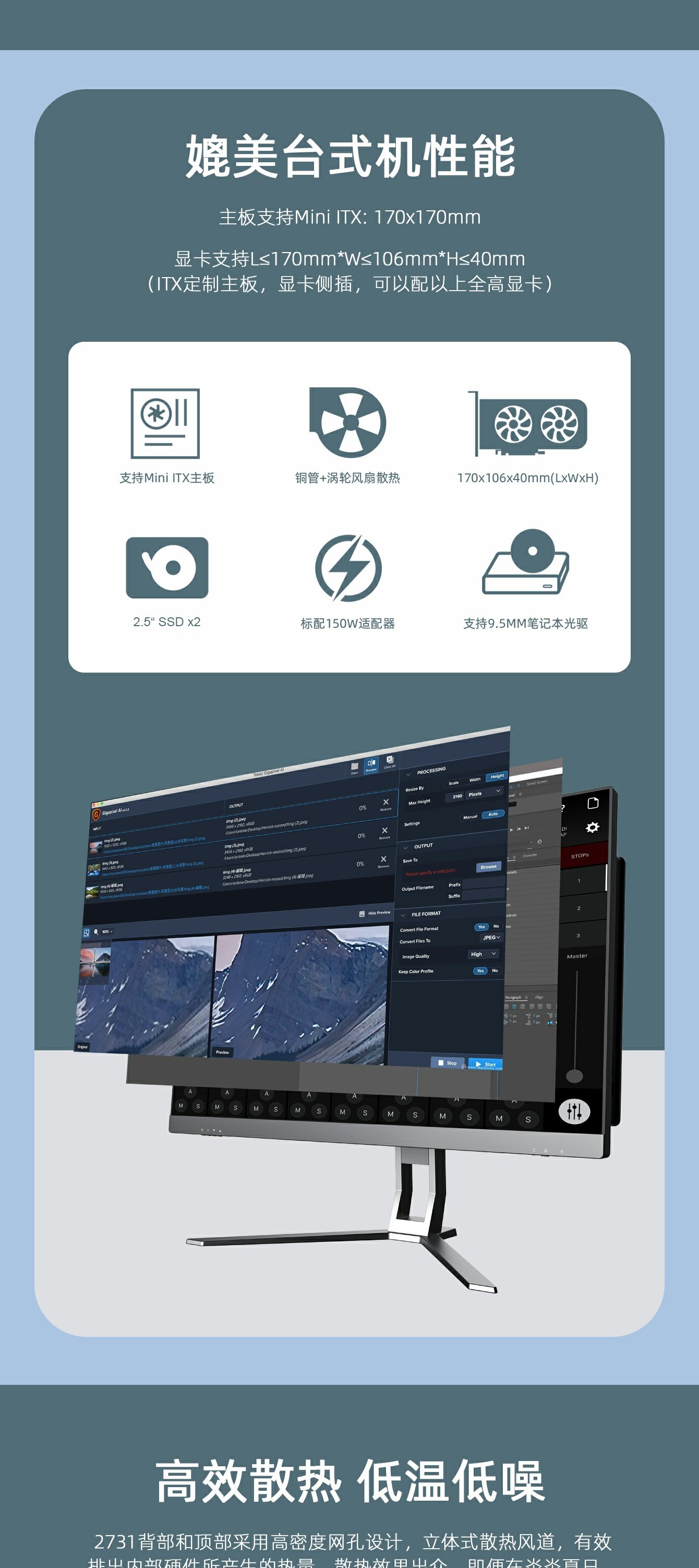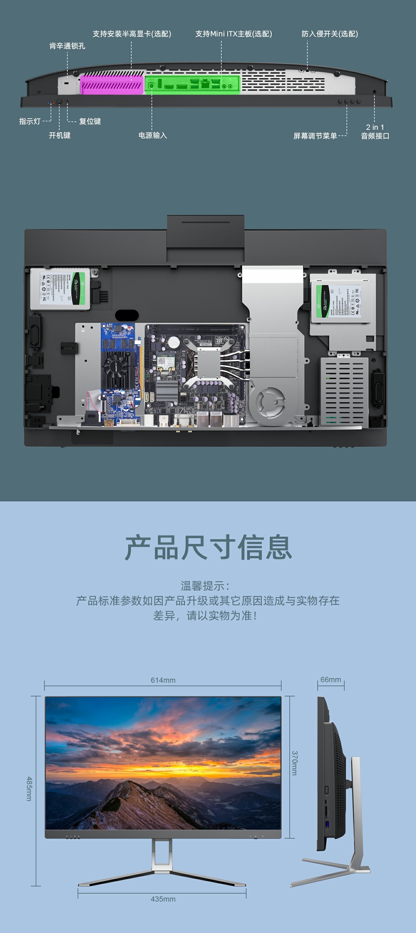 2.可选配Thin-Mini ITX主板:Intel H310/B360/h410/AMD A320。 选配内置WIFI-BT无线网卡.