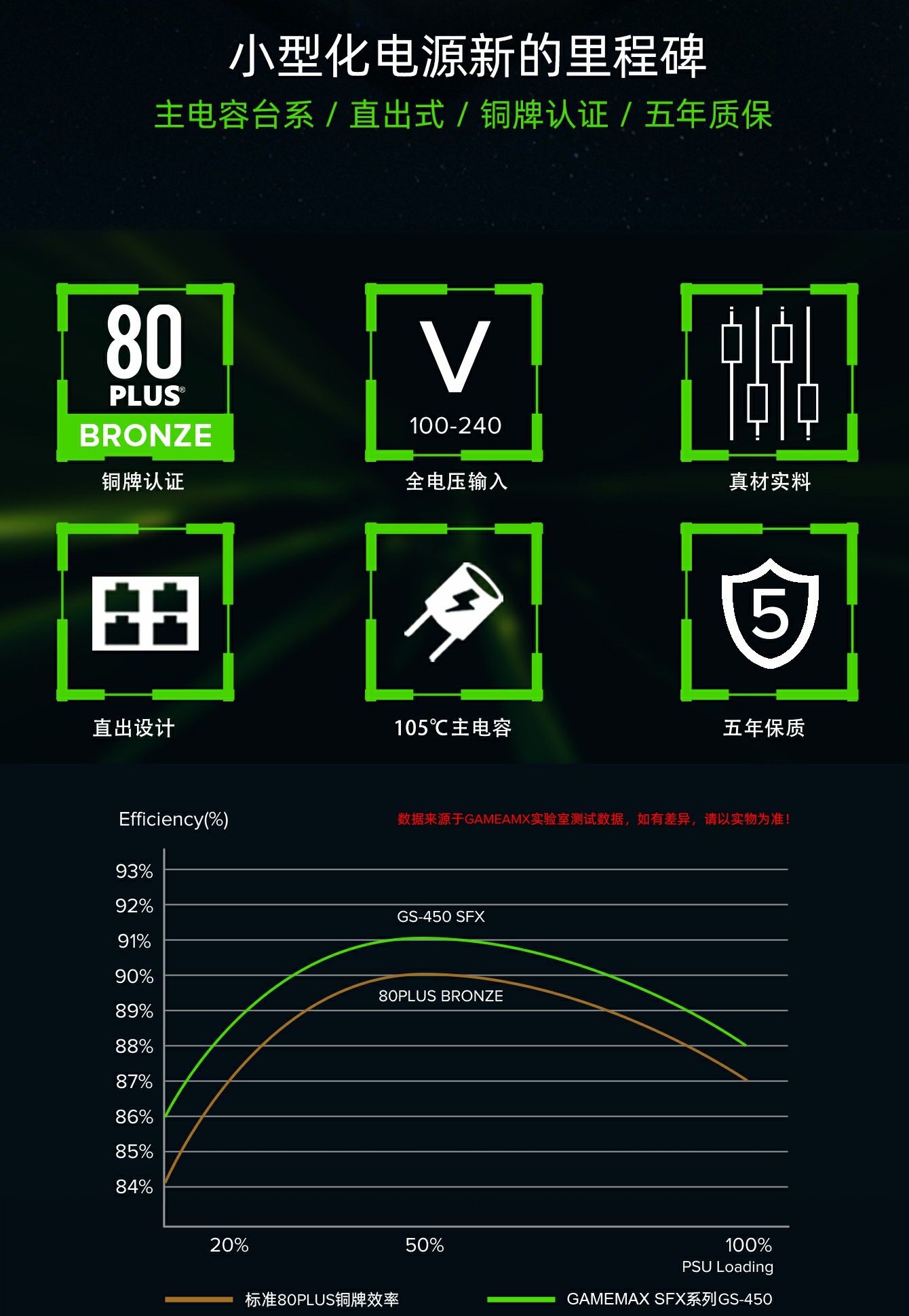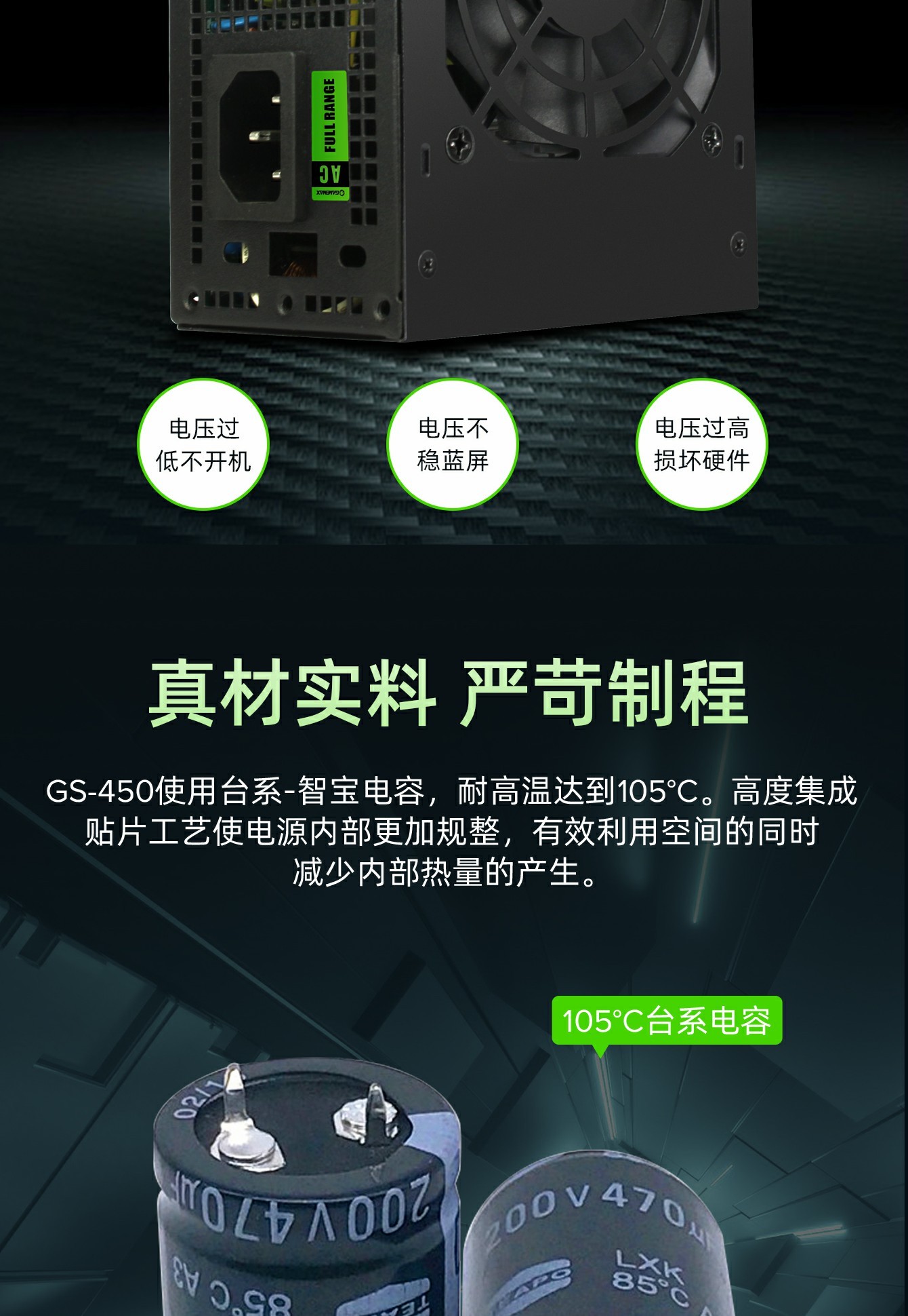 features found in full-size high performance power supplies, with compliant with 80 PLUS efficiency, superior voltage regulation,  along with smart fan controller for better reliability.