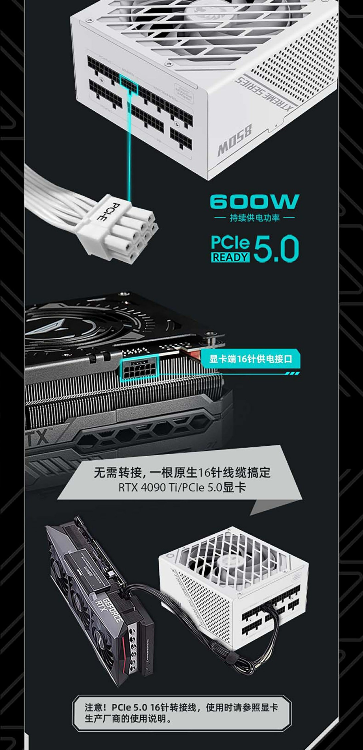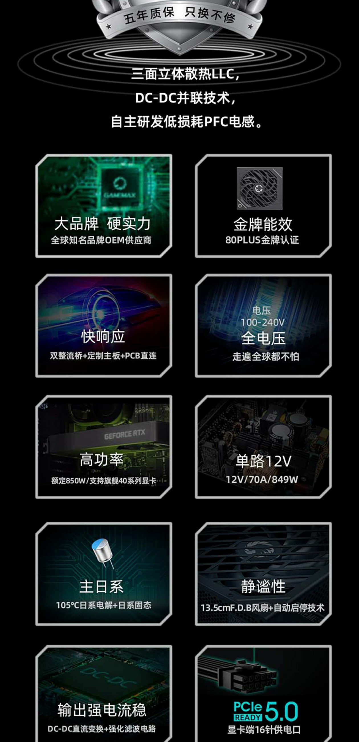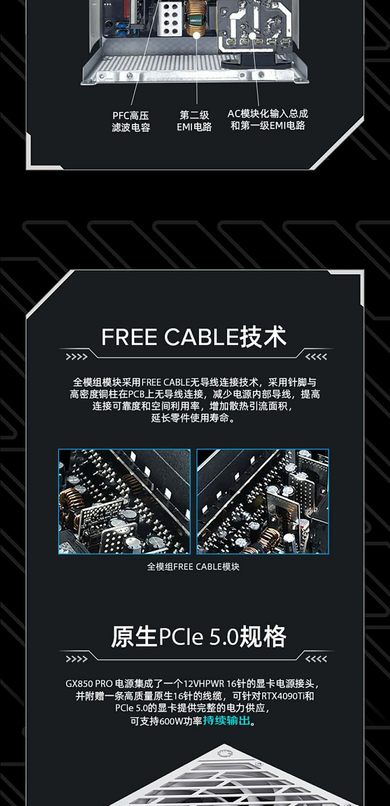 GAMEMAX凌雲GX-850W专业版技术流日系电容ATX3.0电源(可编程LLC/双联DC-DC/数控APFC/13.5涡轮轴流扇PCIe5.0)