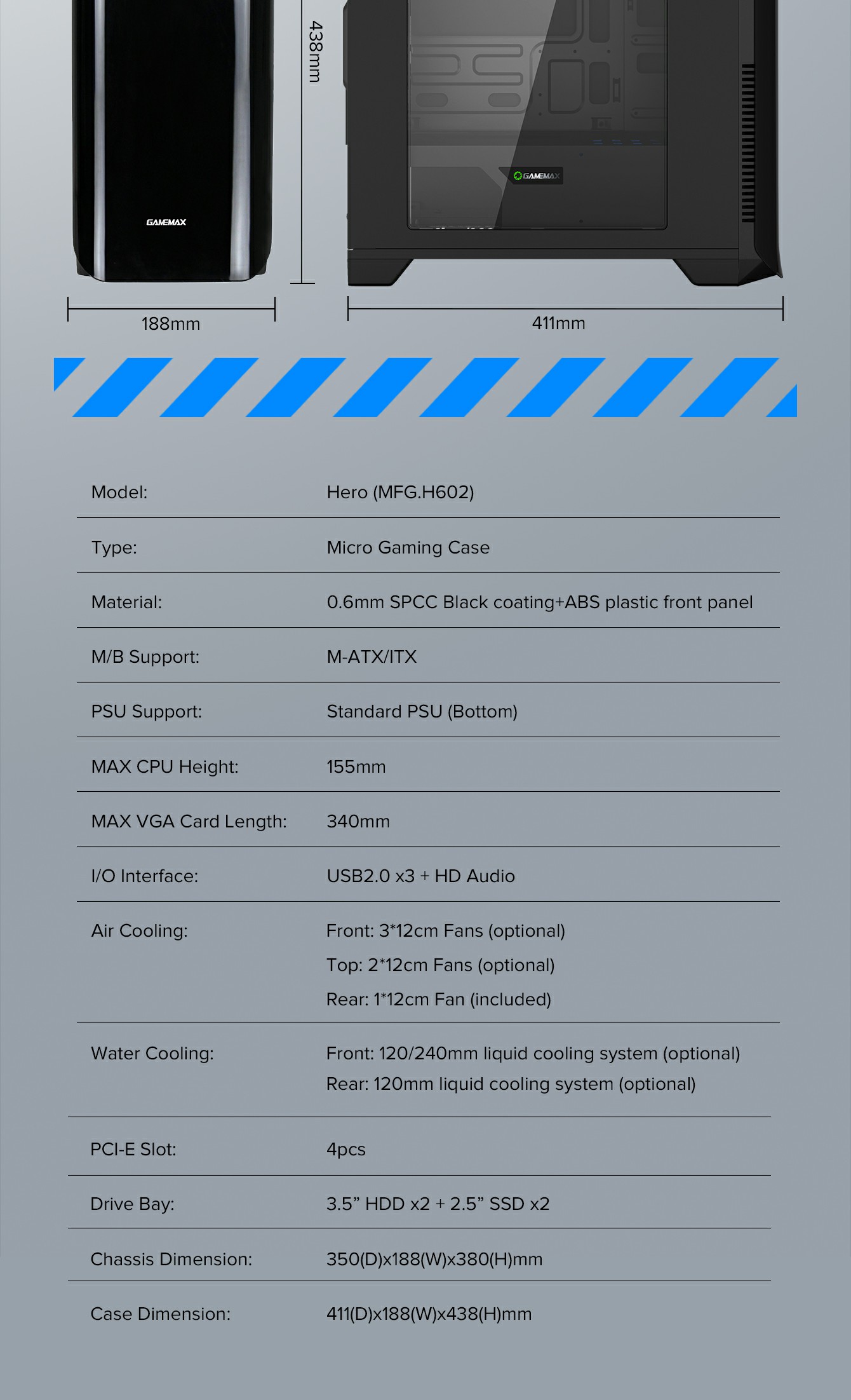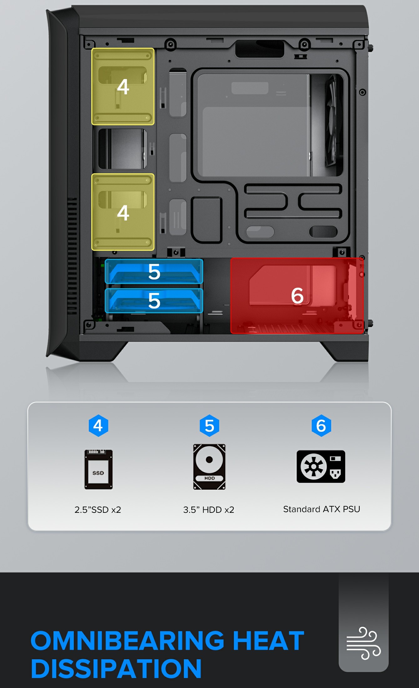 GPU and CPU Support - Support 340mm VGA card and 155mm CPU cooler