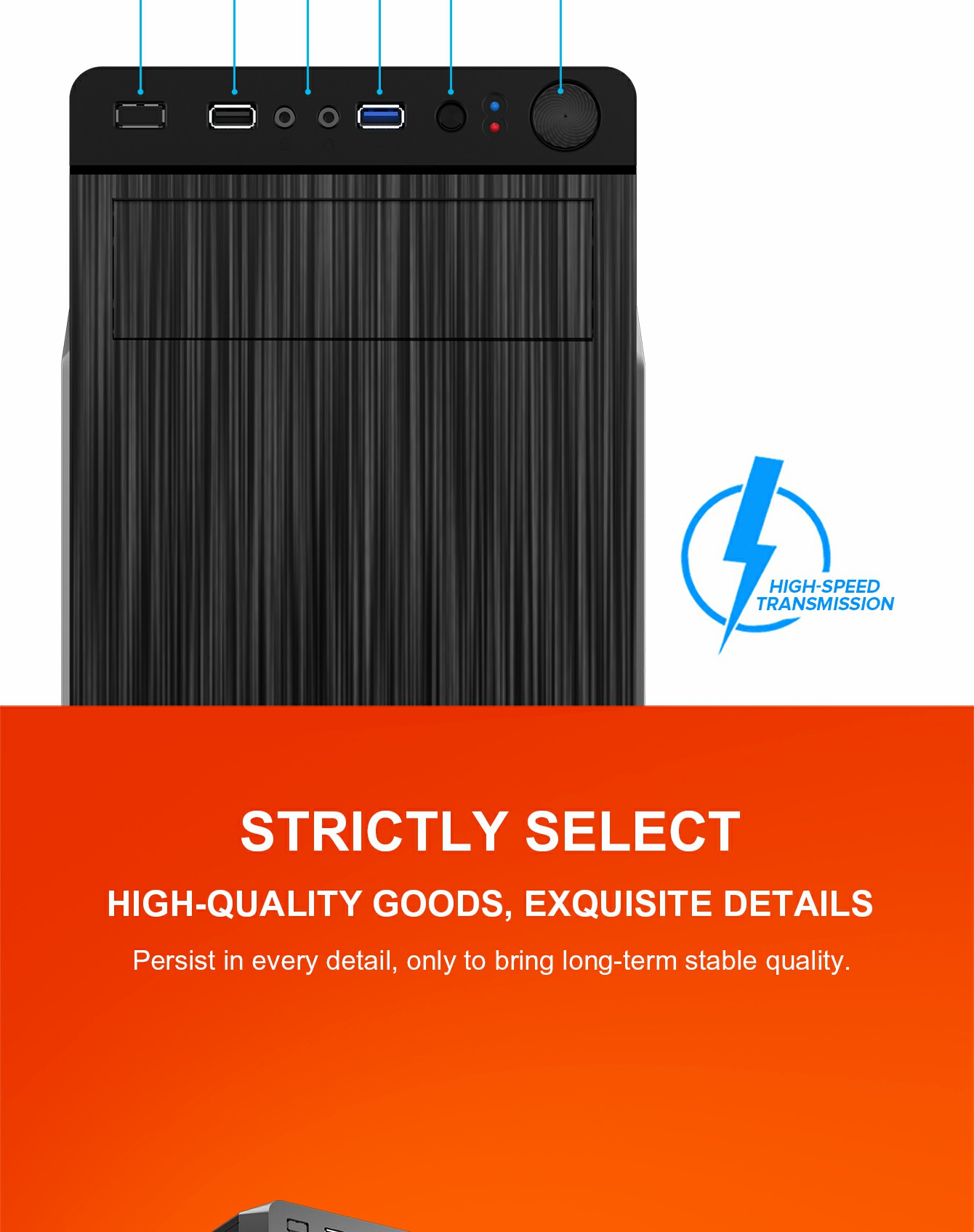 1 x Super Speed USB3.0 port(Optional), 1 x Hi-Speed USB2.0 Port and HD audio ports is an ideal solution for any home / SOHO user