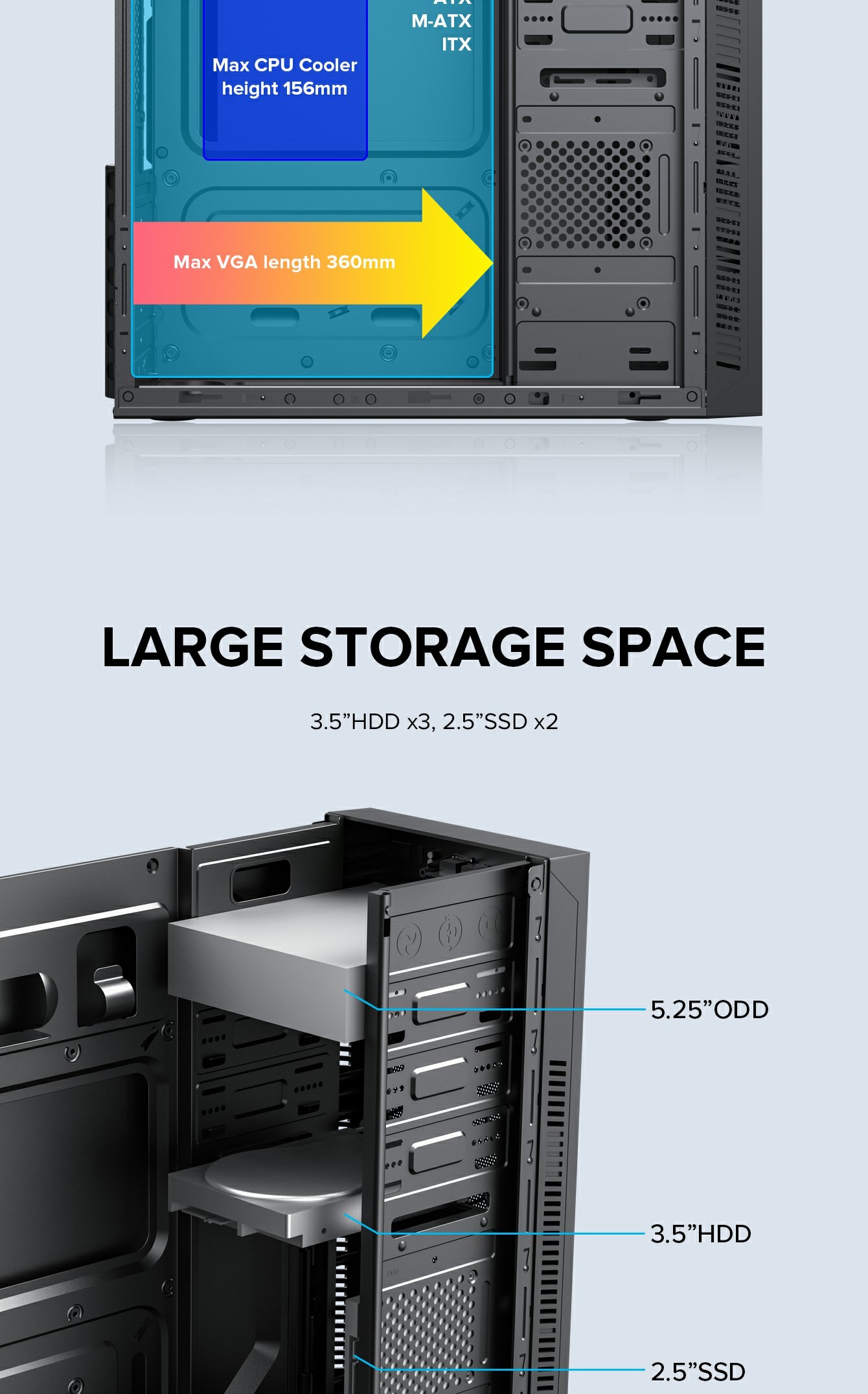 Cooling Side:Space for 2 x 120mm fans(Optional)