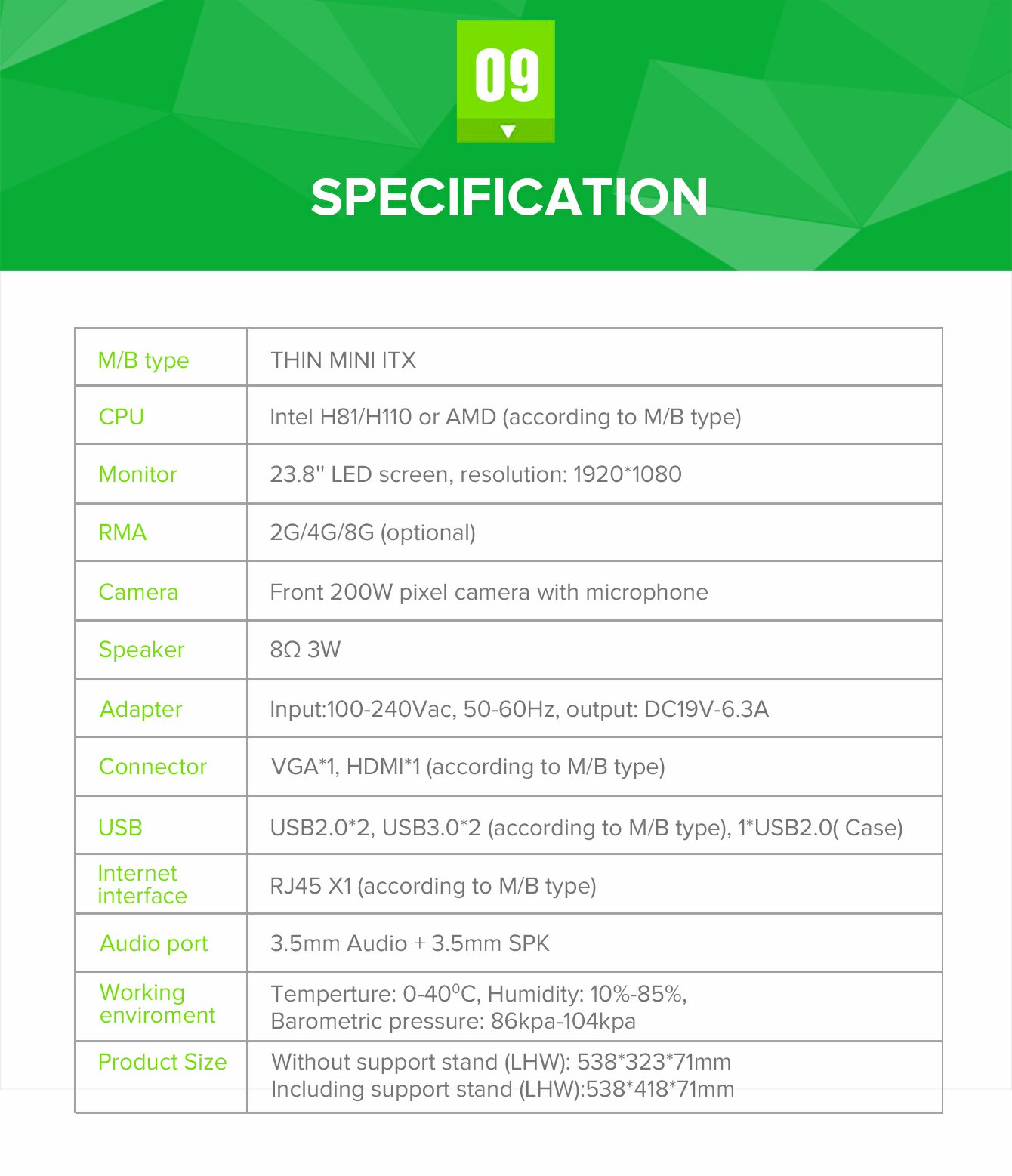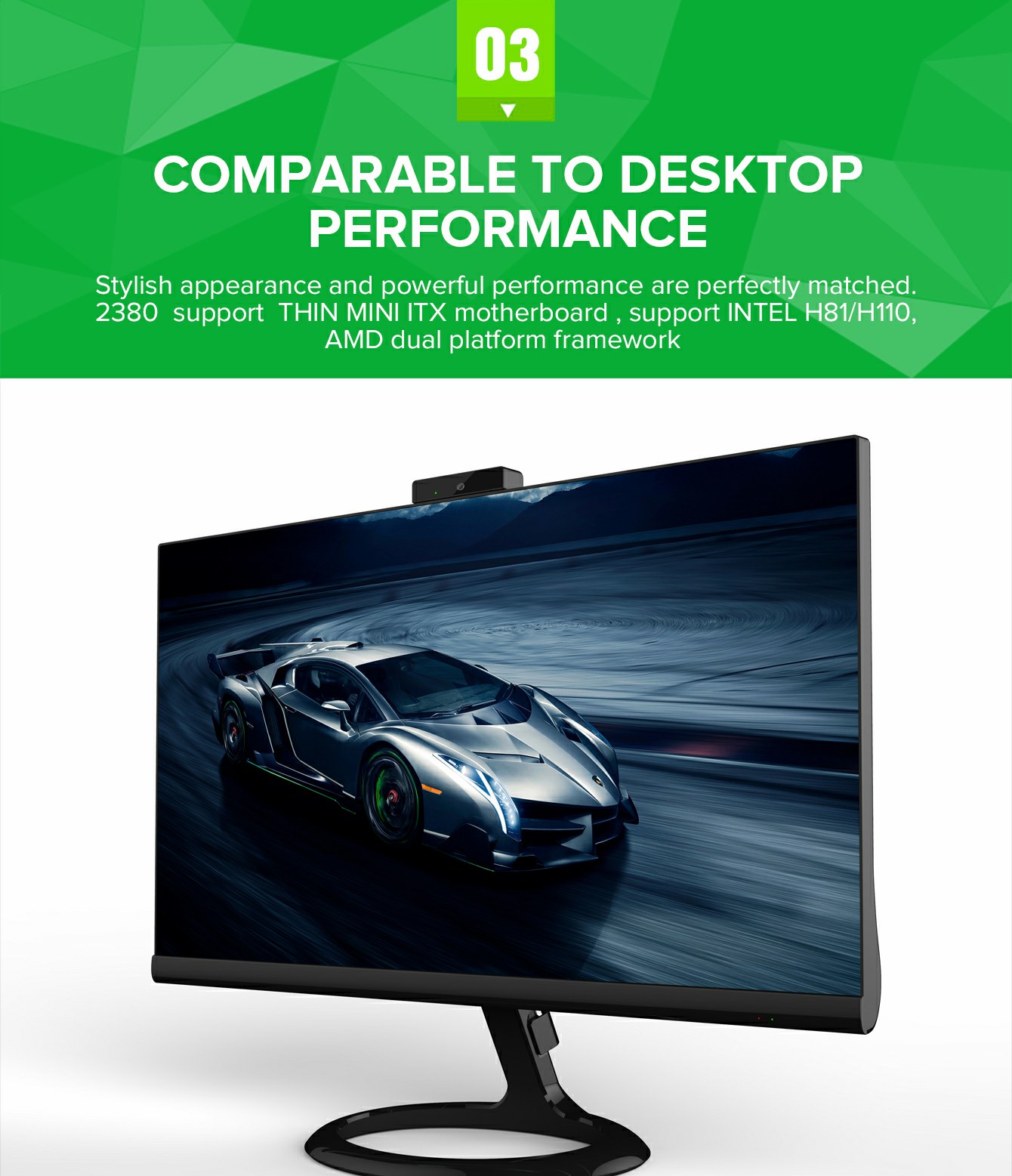 Build-in Wifi solution to keep compact and clean appearance