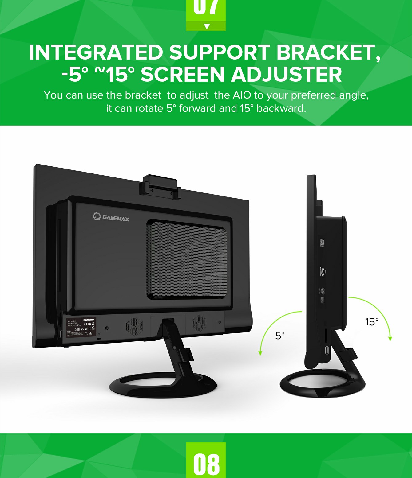 Adjustable support in 15-20 degree