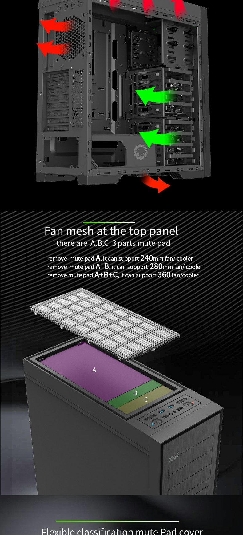 9905x Black full tower Silent Case with a powerful cooling system, and 10xHDDs fix position, along with 3x12cm silent fans pre-installed which speed of the fan can be controlled via the top button. The fan speed can be freely controlled, and it is with HD Audio, 2 x USB 2.0 & 2 x USB 3.0 located on the top giving the user easy access