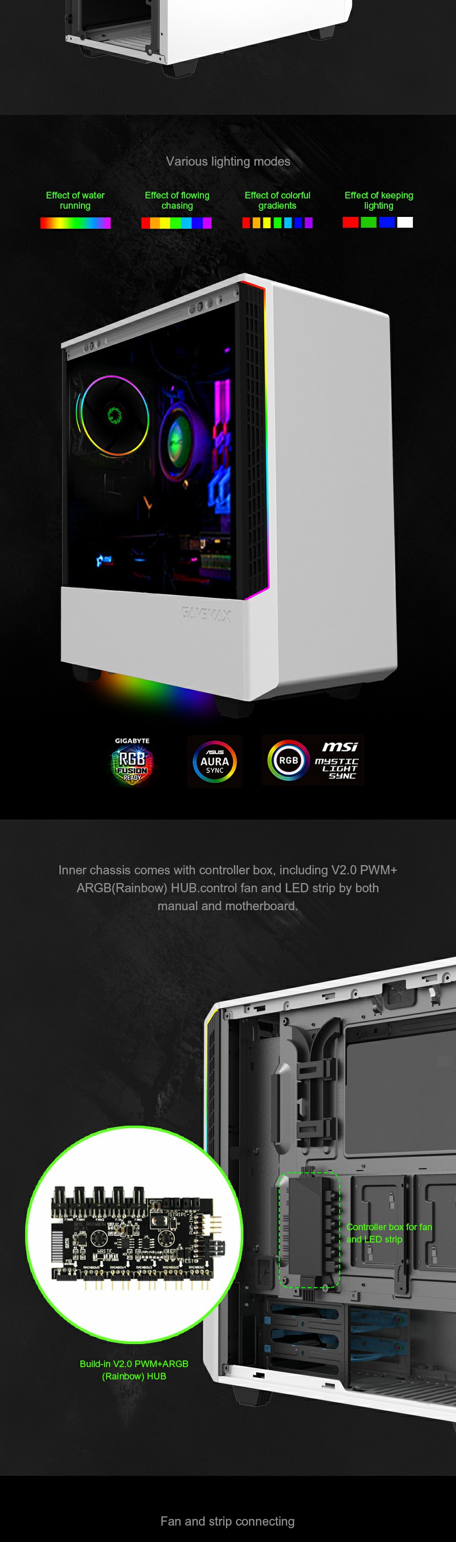 You can effortlessly control ARGB lighting and fans via GameMax V2.0 PWM+Rainbow HUB controller pre-installed, while Adaptive Noise Reduction optimizes via PWM controls.