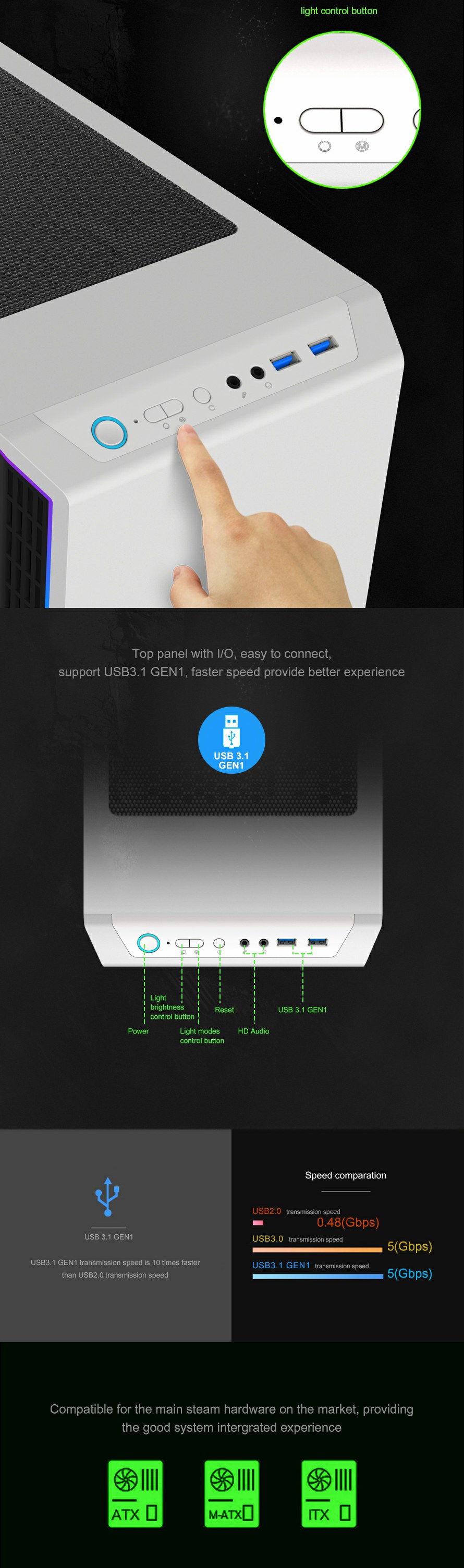 8002 MID Tower gaming ATX Case,Without much effort, the 8002 Gaming case is simple and elegant design, which allows users to create a clean and beautiful system.