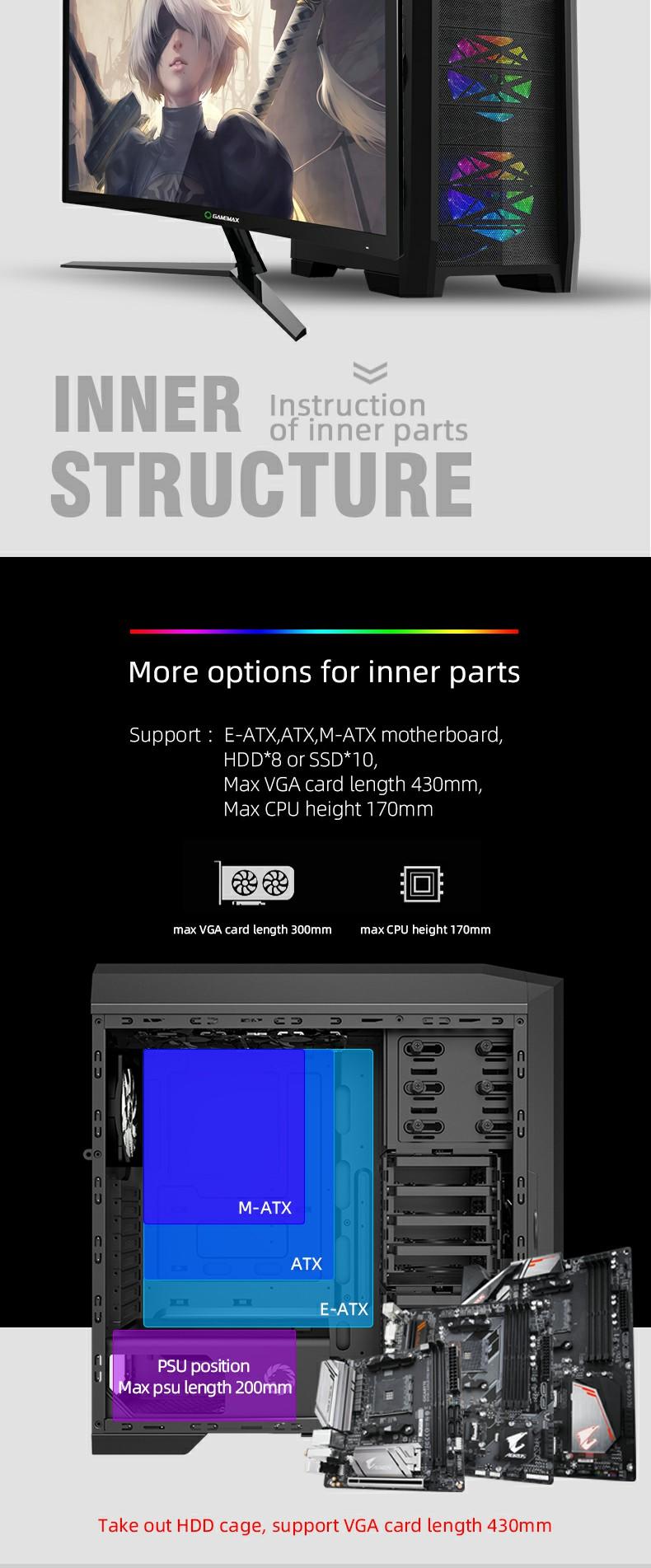 Support Standard ATX switch power supply, and can be mounted up to 420mm graphics card.