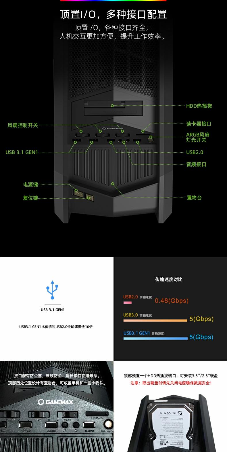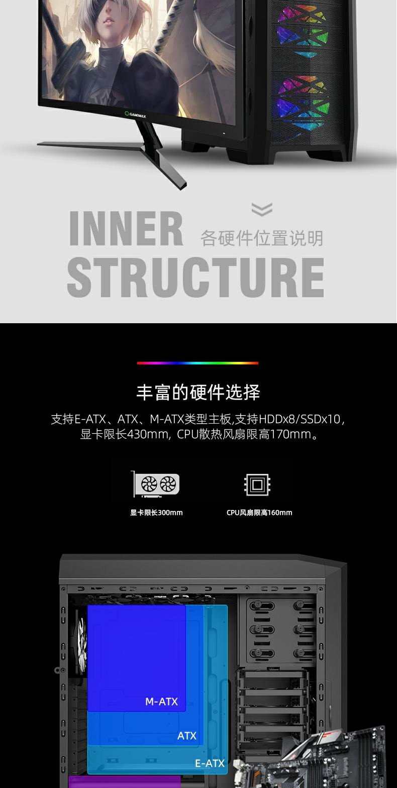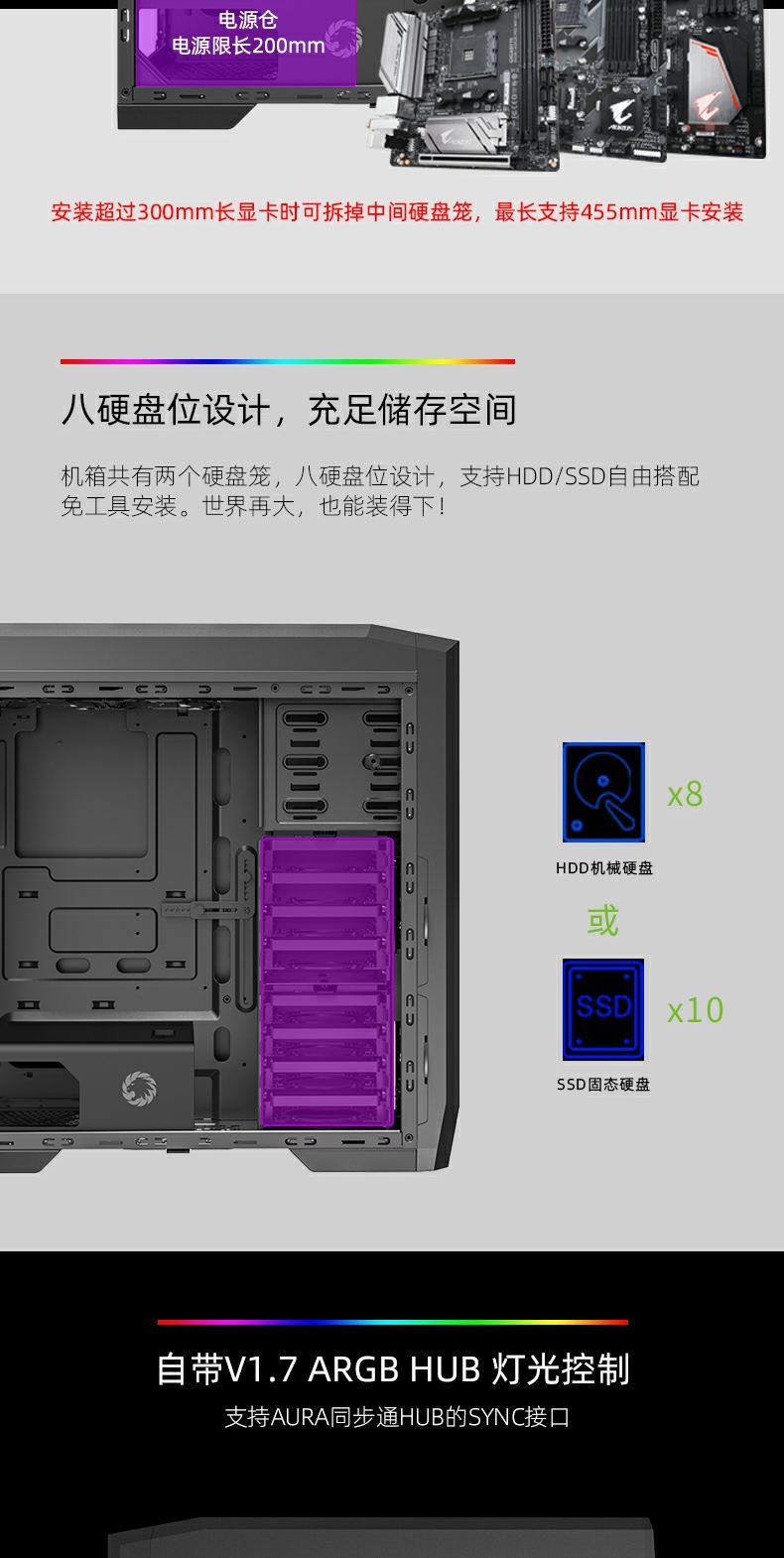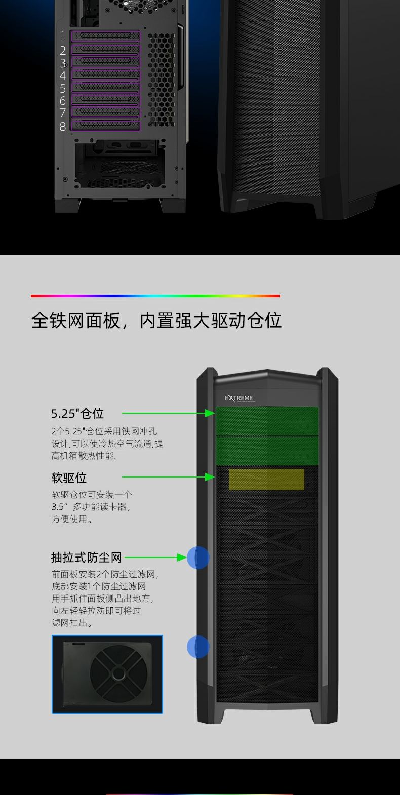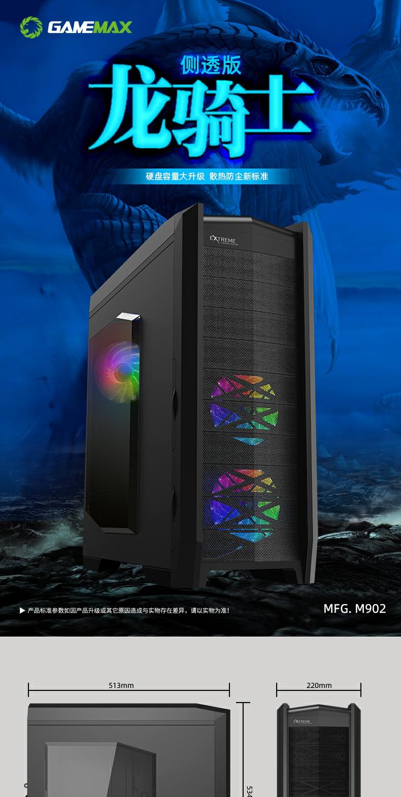 龙骑士机箱 风扇调速走背线长显卡防辐射台式机箱