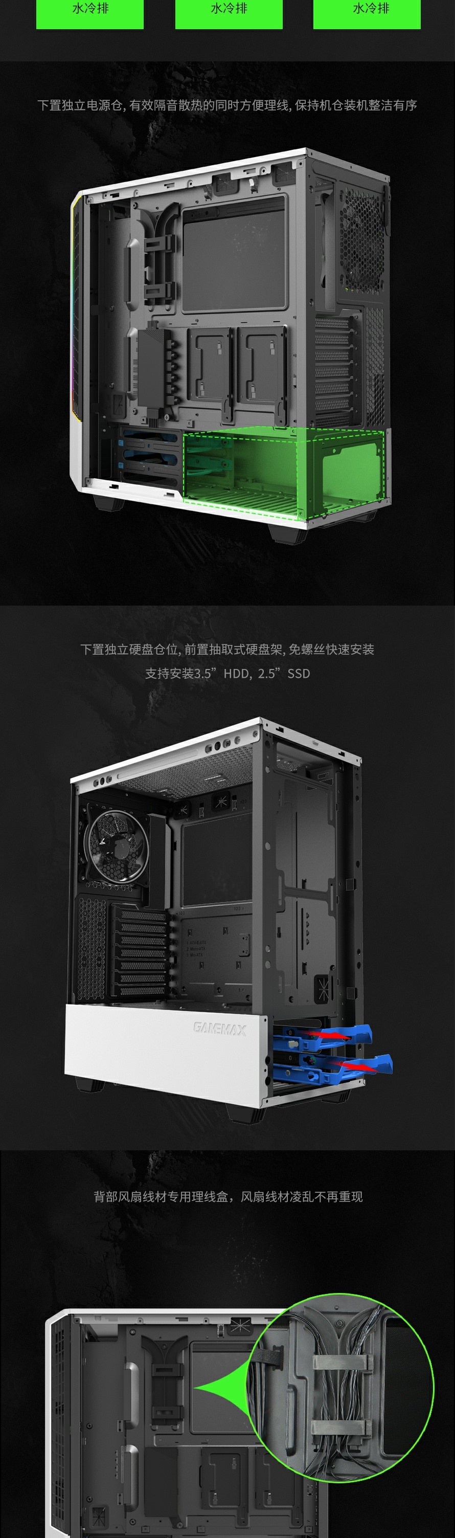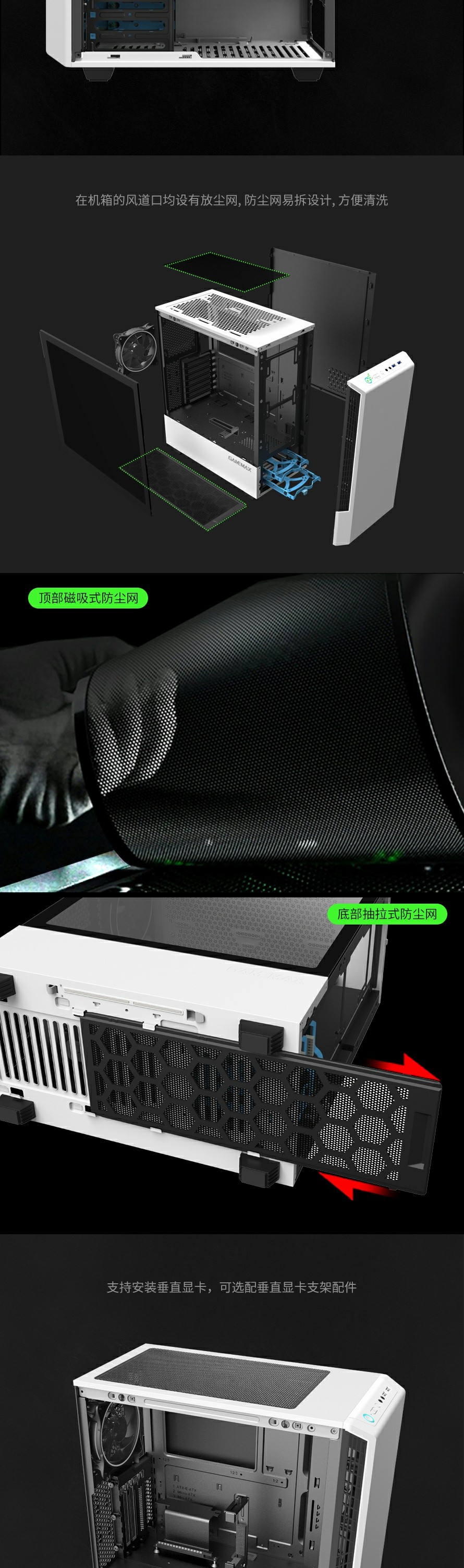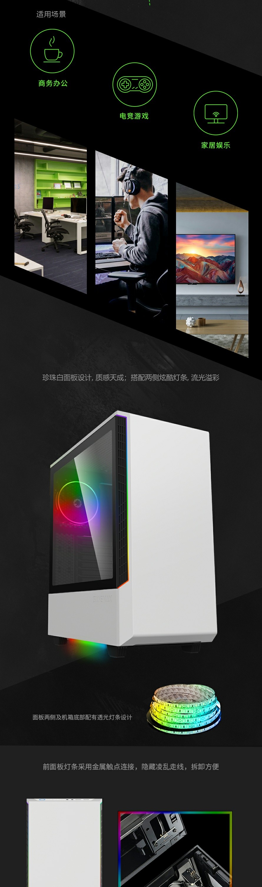 前面板ARGB灯条,凸现质感,并配置2侧进风防尘设计,使系统运行在安静高效的散热空间。