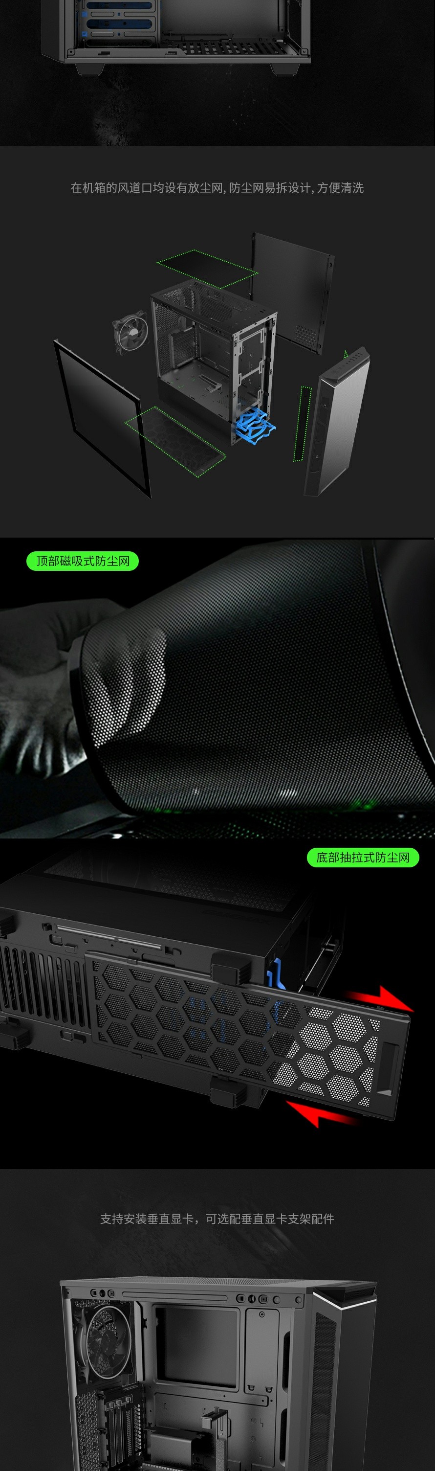 原生铁质面板,凸现质感,并配置2侧进风防尘设计,使系统运行在安静高效的散热空间。