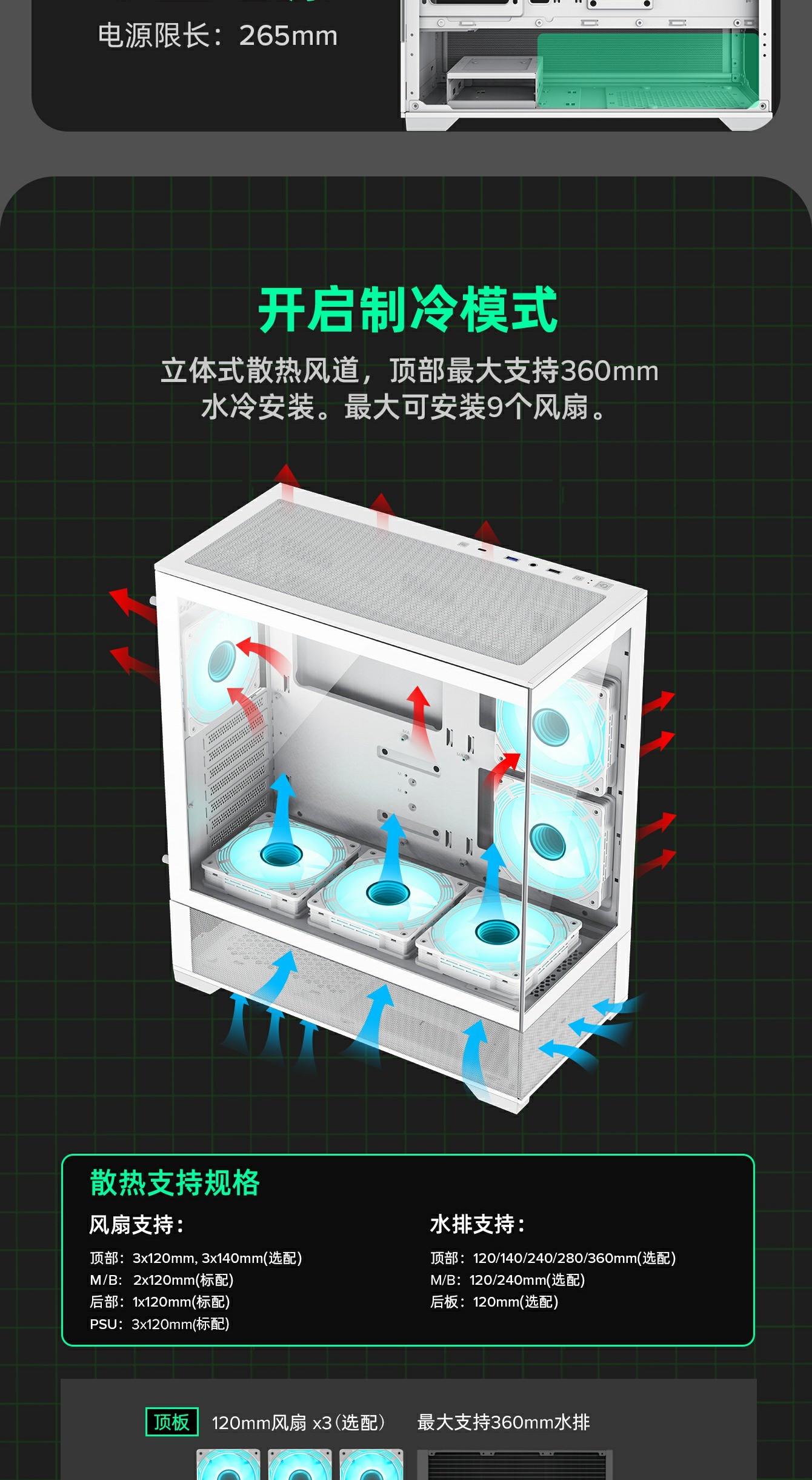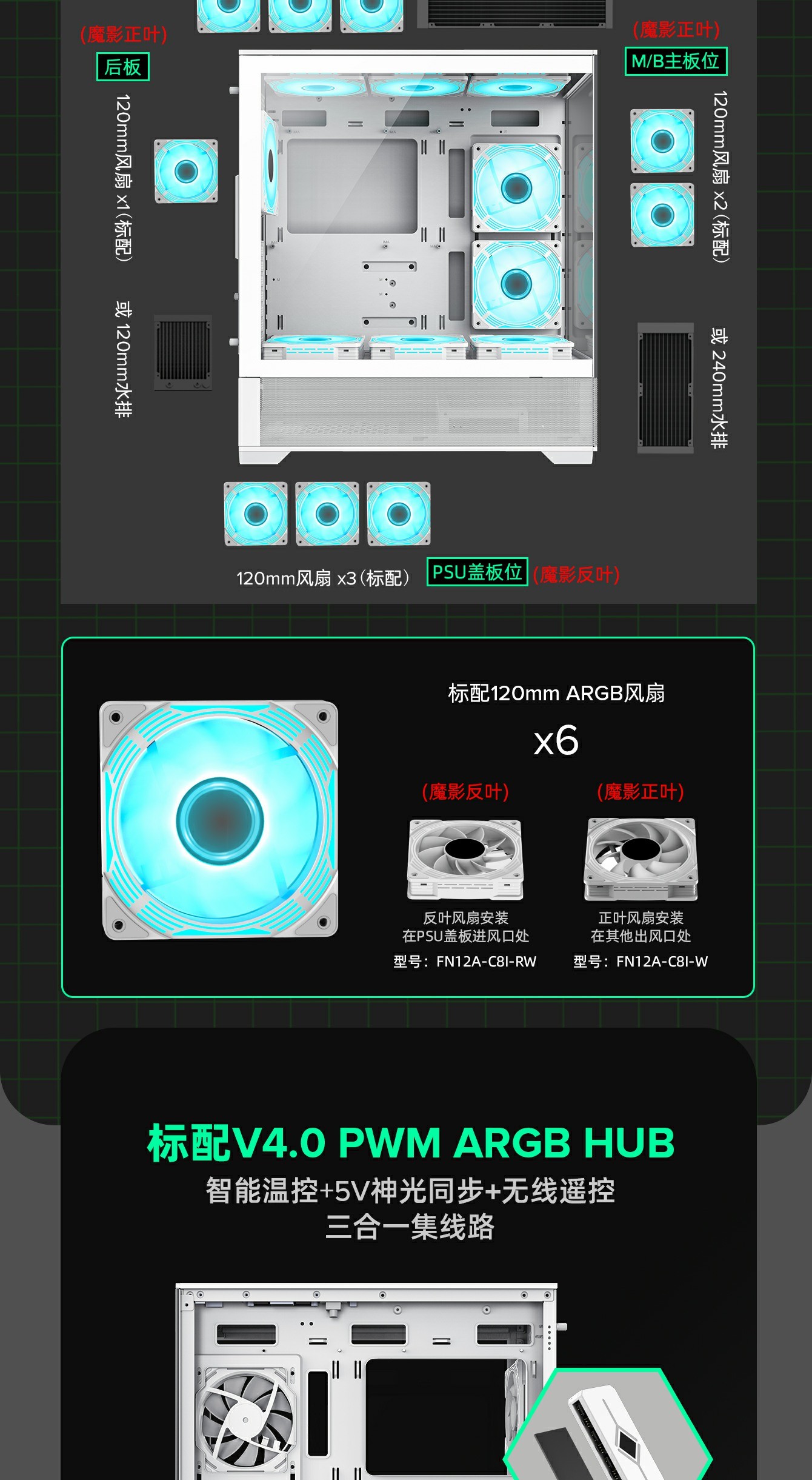 | PSU Cover | 3x120mm (Reverse fan blade)(FN12A-C8I-R) (Fan optional) | |