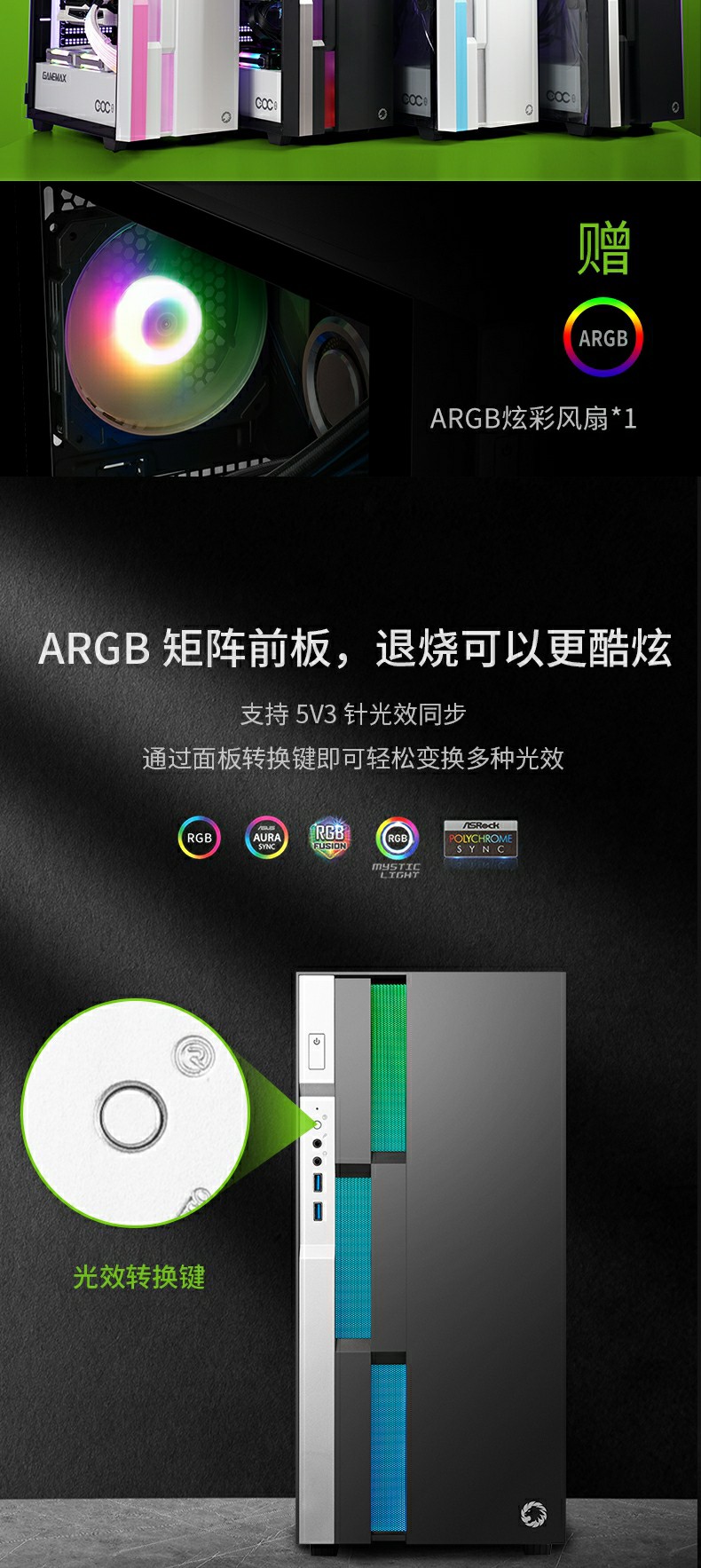 3609最多可支持8个风扇,电源仓可加装风扇,配合T形风道,为硬件带来健康的运行环境。选配有带有3针ARGB接头的光谱RGB集线器,可直接连接到您的主板,允许您通过主板提供的软件控制风扇和LED灯条同步。