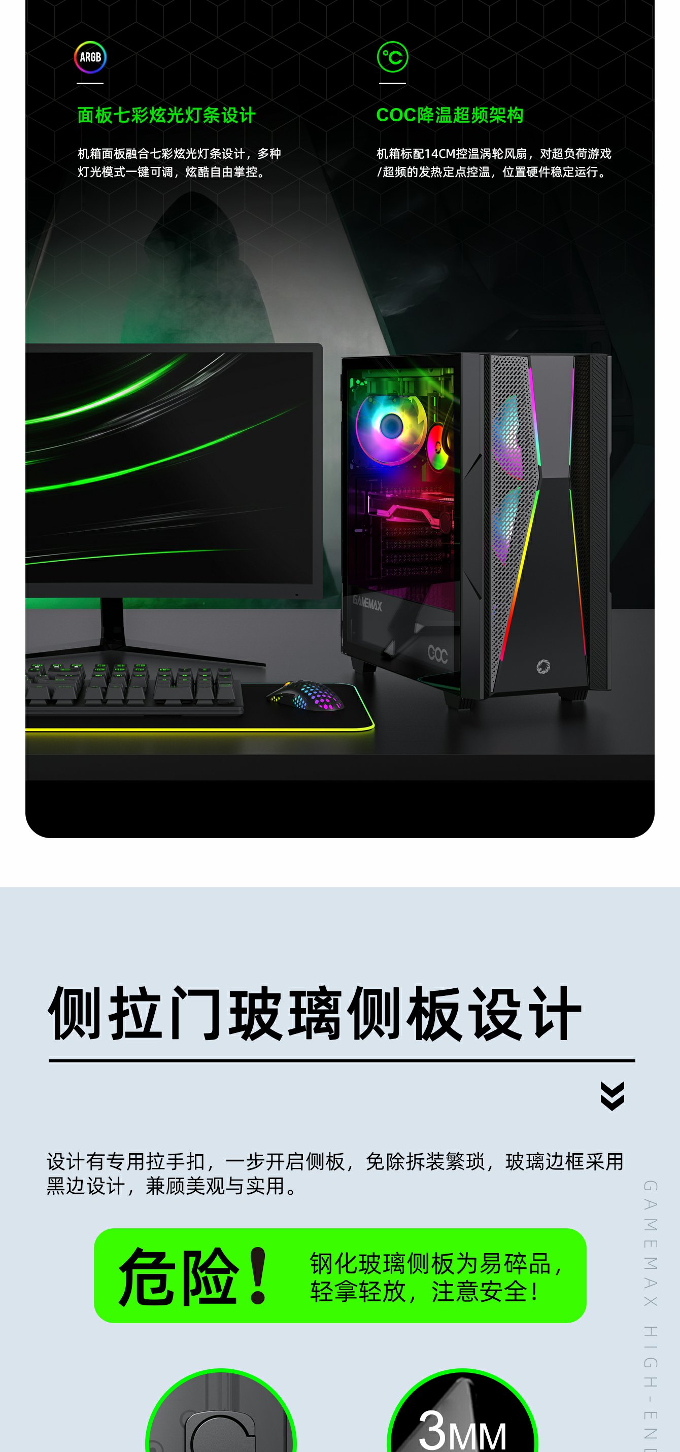 3610 ATX游戏机箱, 带有COC全新超频架构,控温涡轮,主动出击