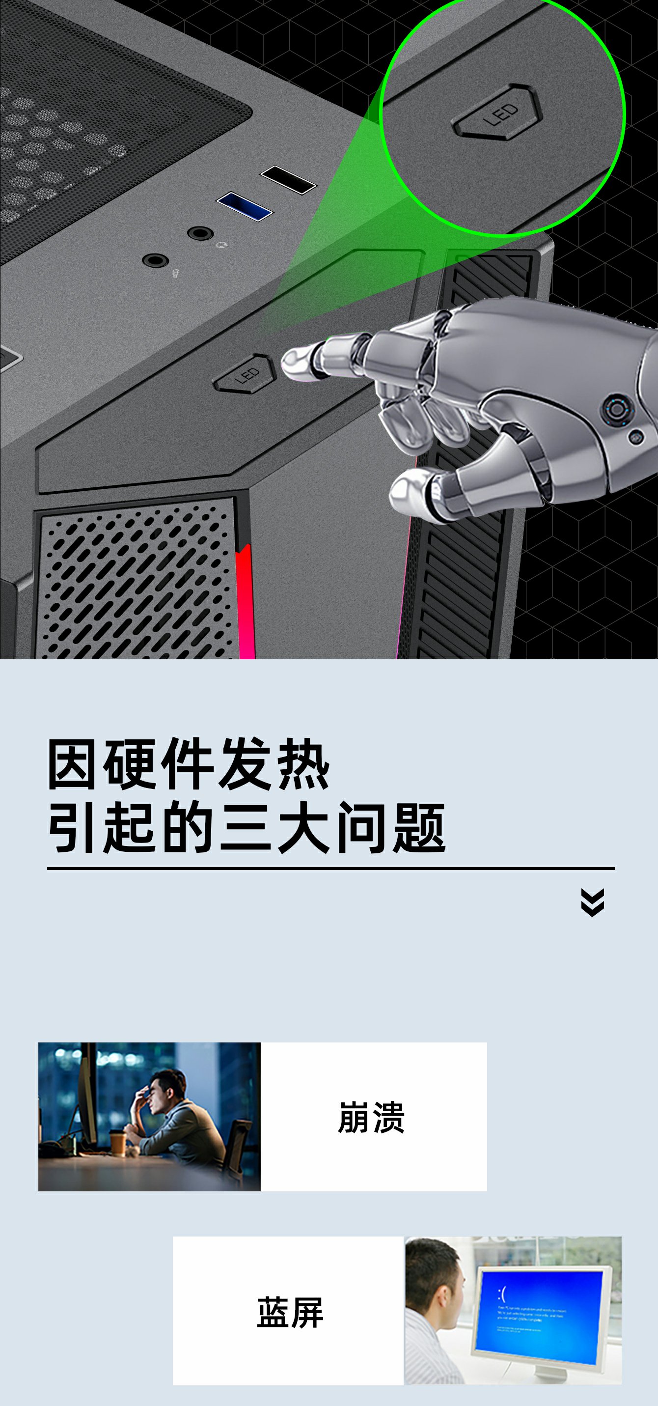 ?有 T 形靶向式风道,通过具有针对性的全新风道,为硬件、主板降温,避免主板电压模组发烧才能有效治疗崩溃,蓝屏各卡顿问题