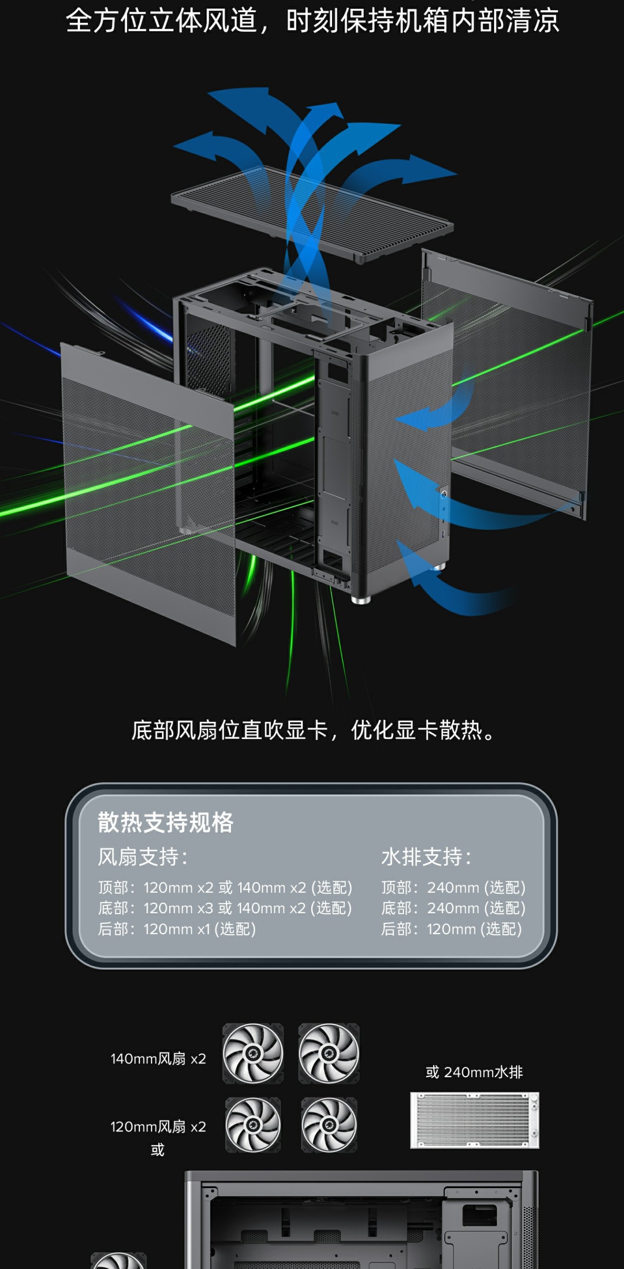 底部风扇位直吹显卡,优化显示散热