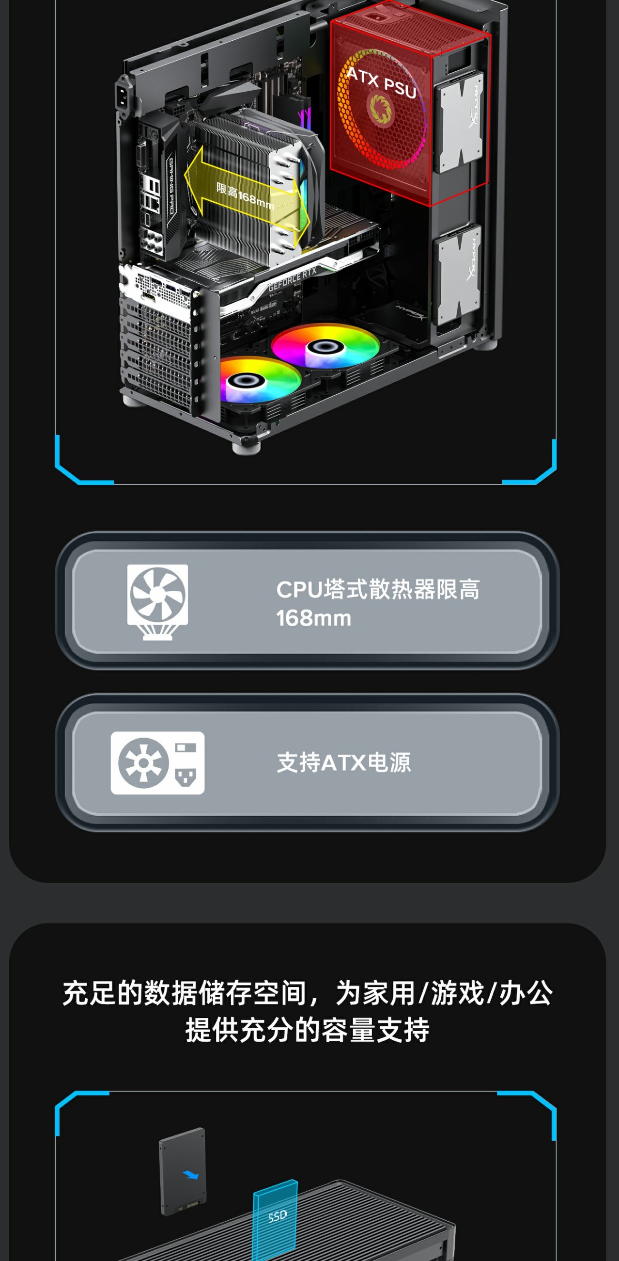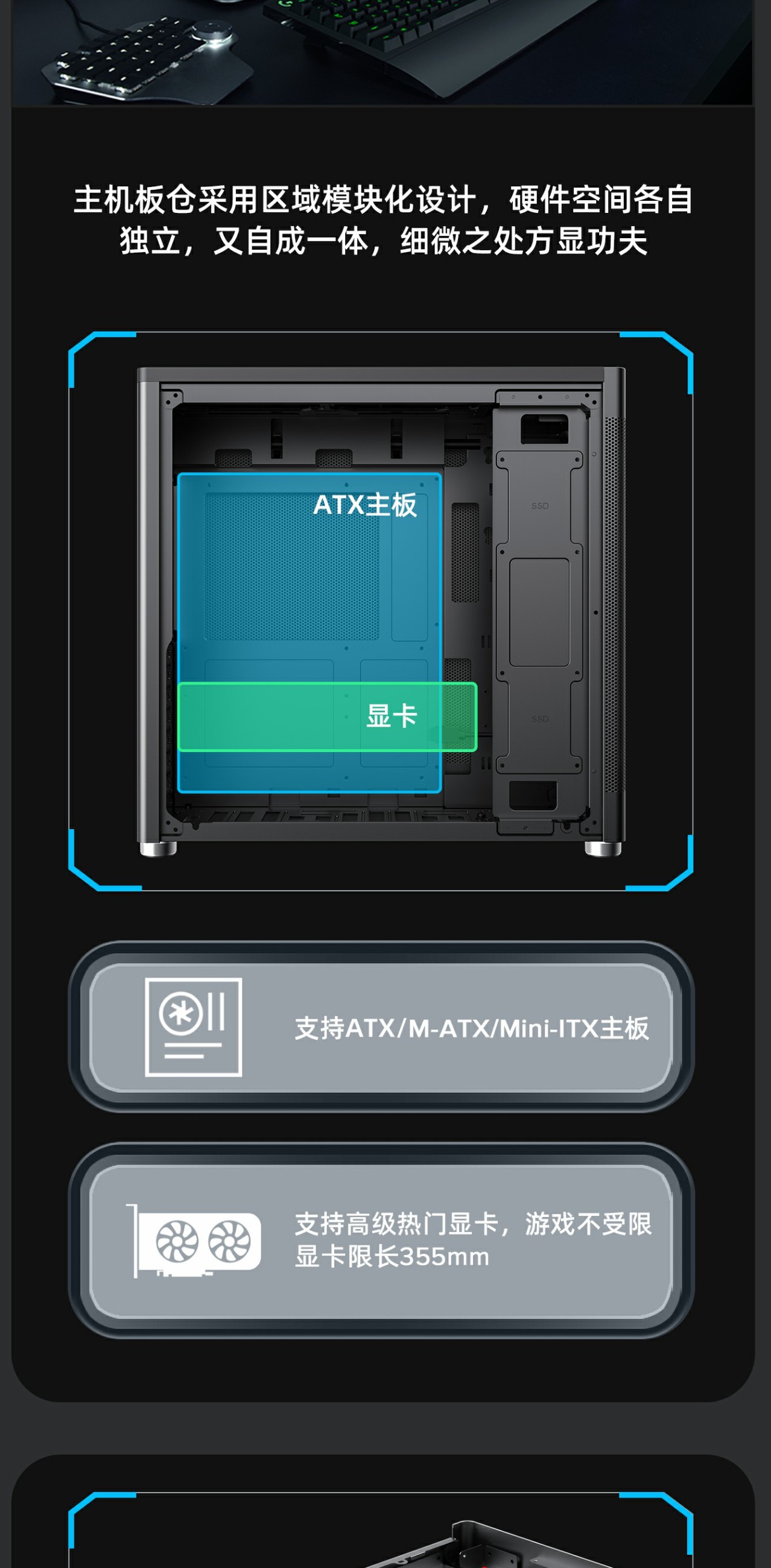 支持高阶热门显卡305~355mm,游戏不受限。
