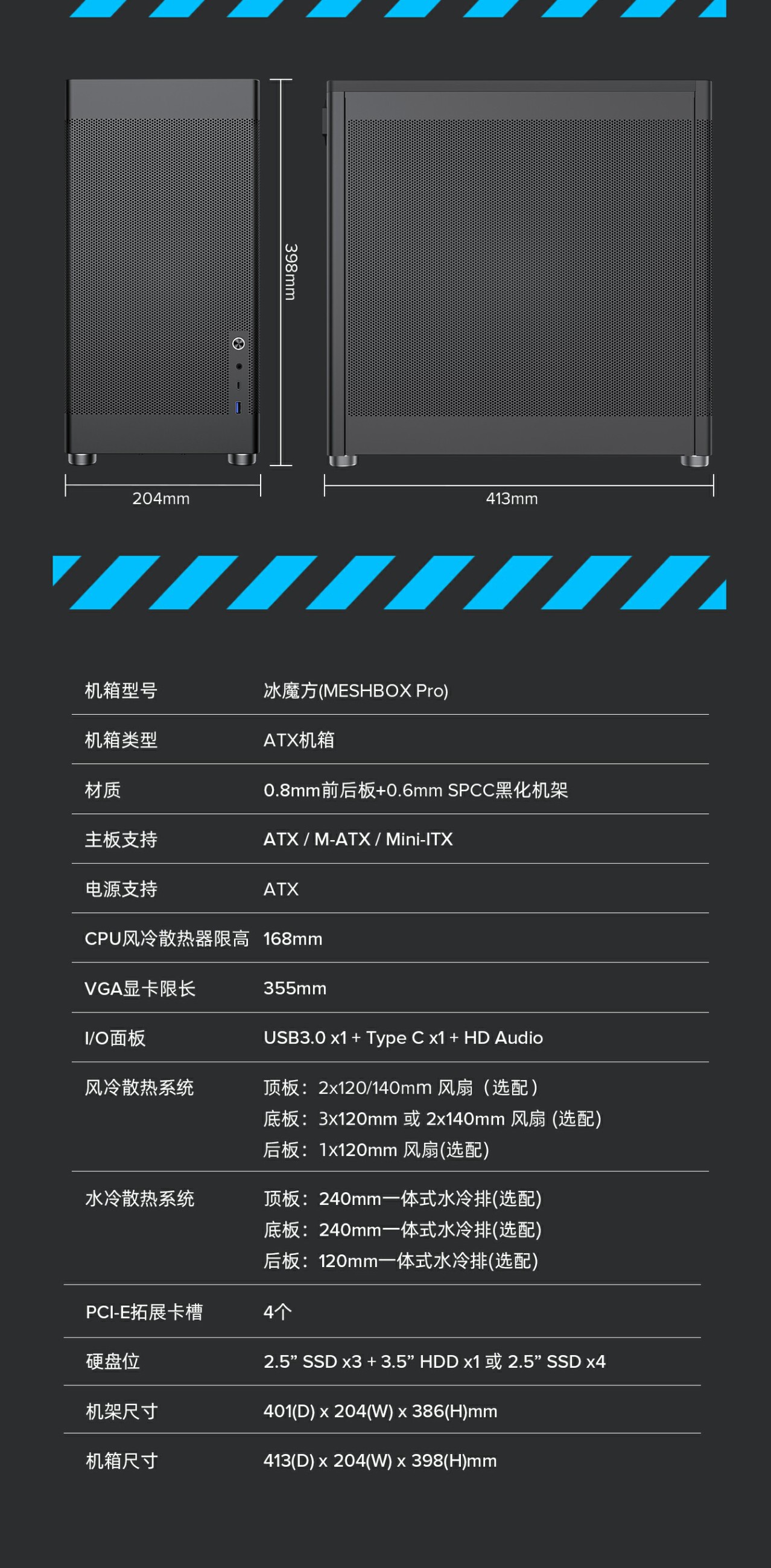 支持240水排及高达168mm的风冷CPU散热器