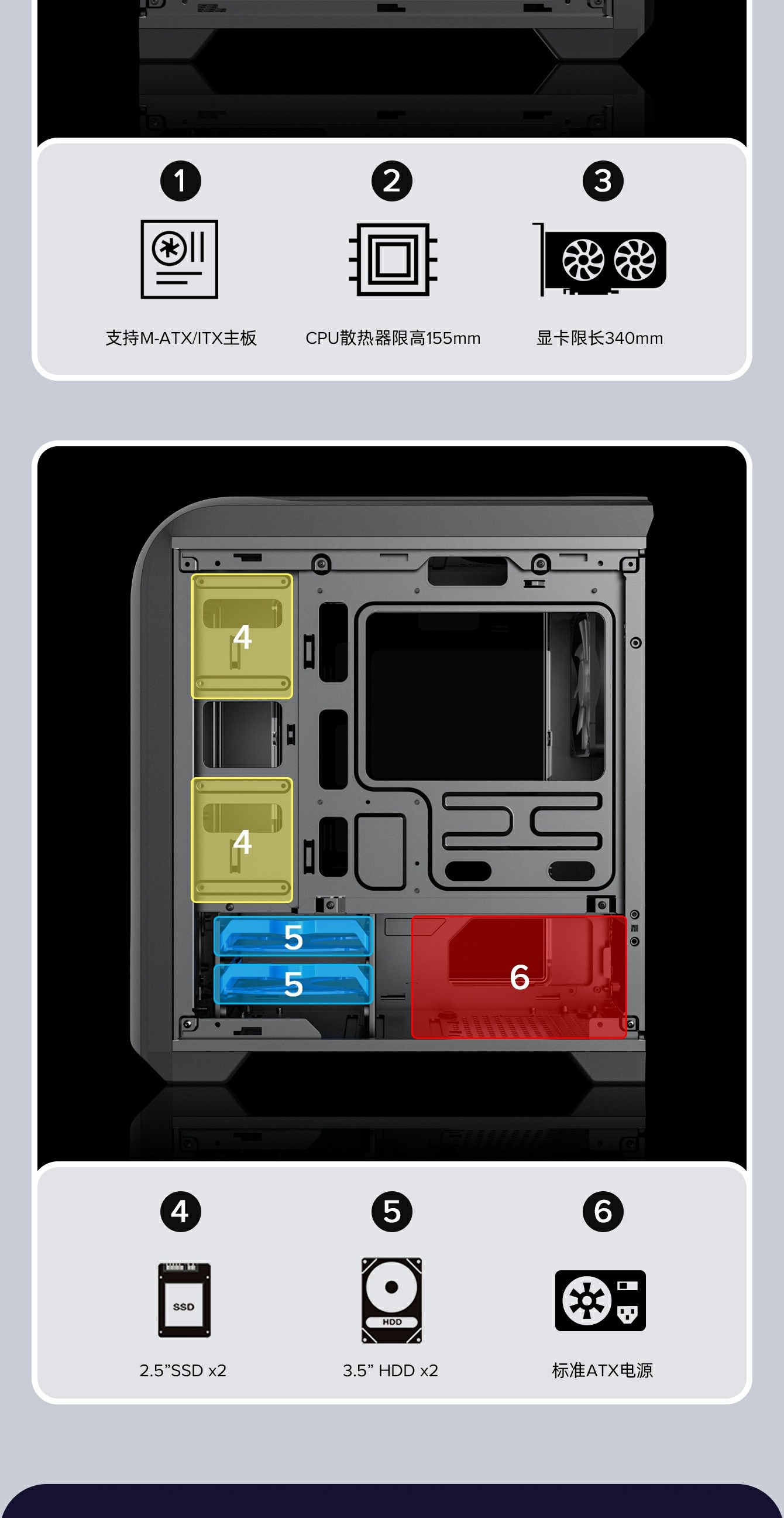 | 水冷 | 前板 | 冷排120mm*1,240mm*1 |