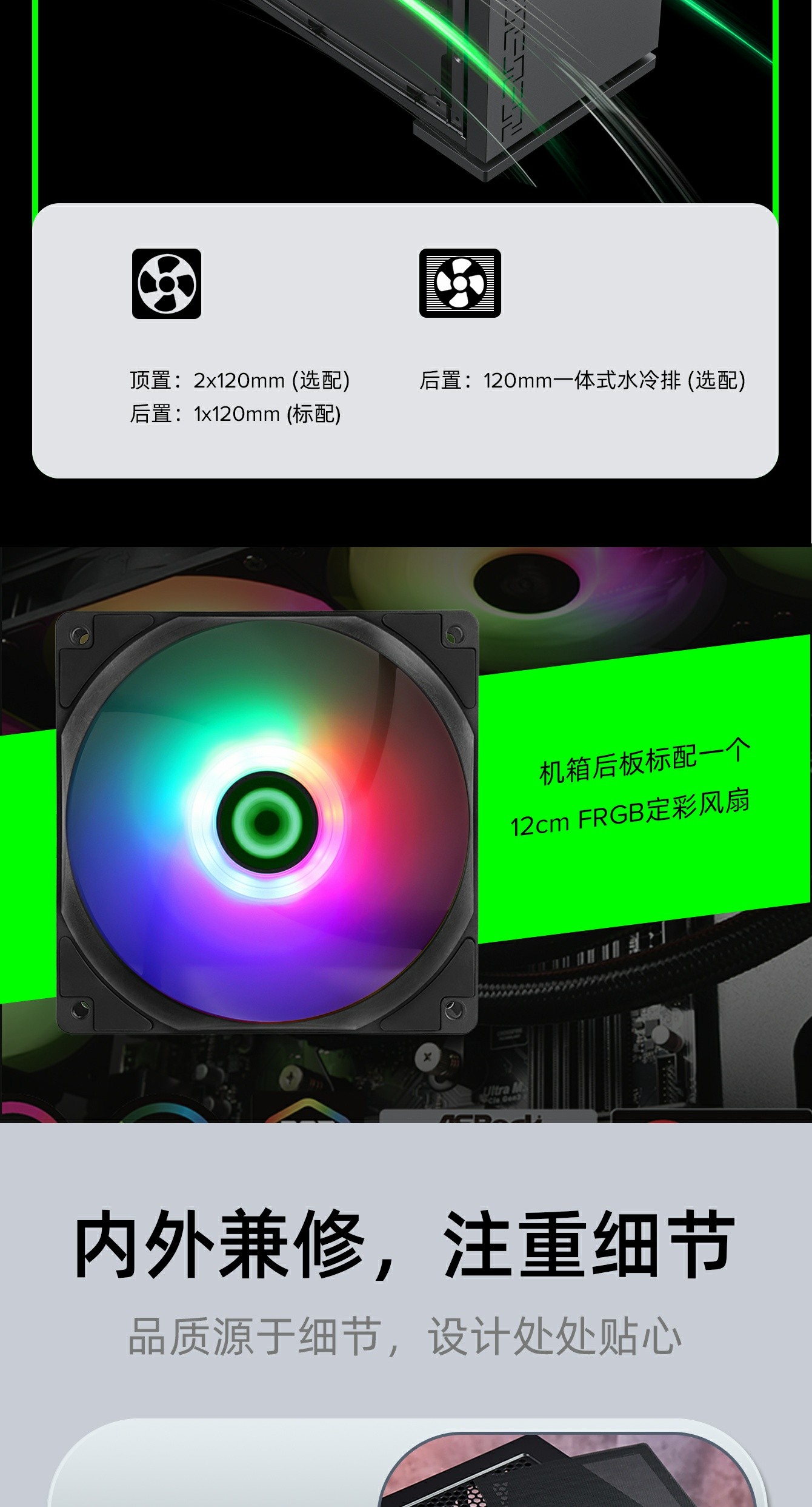 水冷散热系统:后板水冷散热系统:1*120mm 水冷