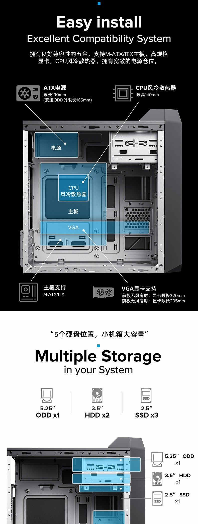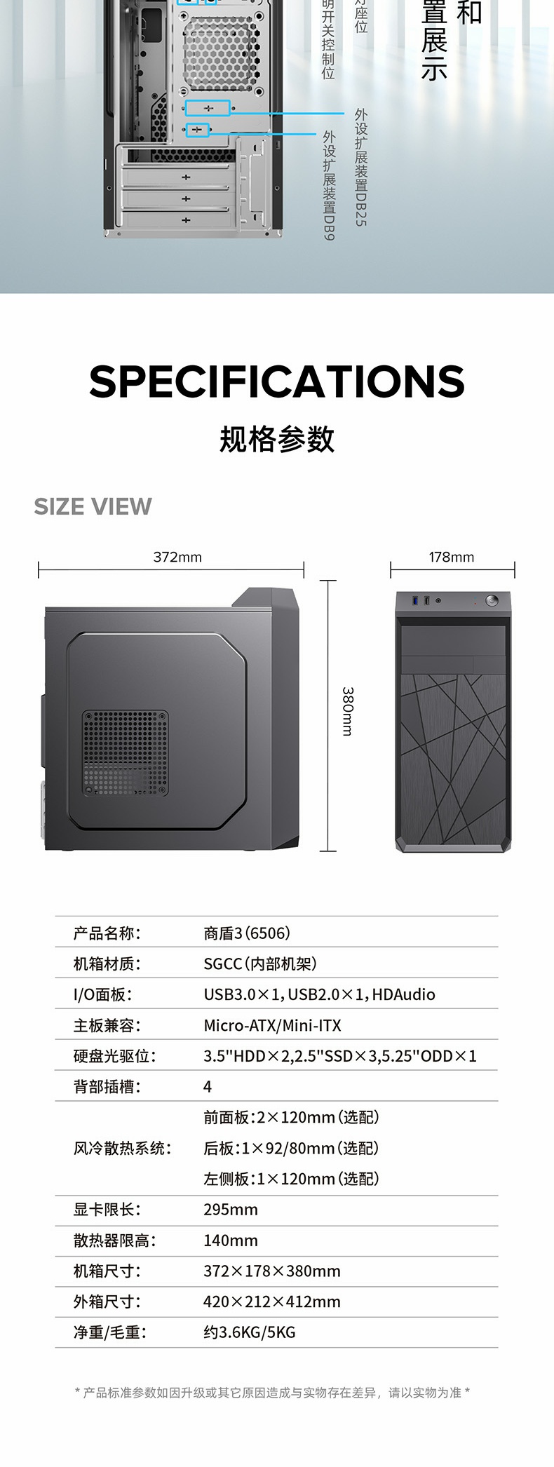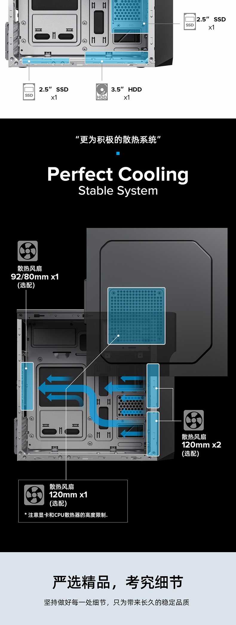 | 风冷 | 前板 | 2x120/92/80mm(选配) |