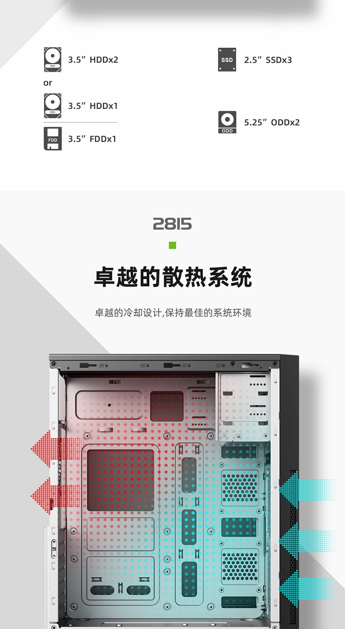 | Cooling Fan Support | Front | 2x120/92/80mm (Fan optional) |