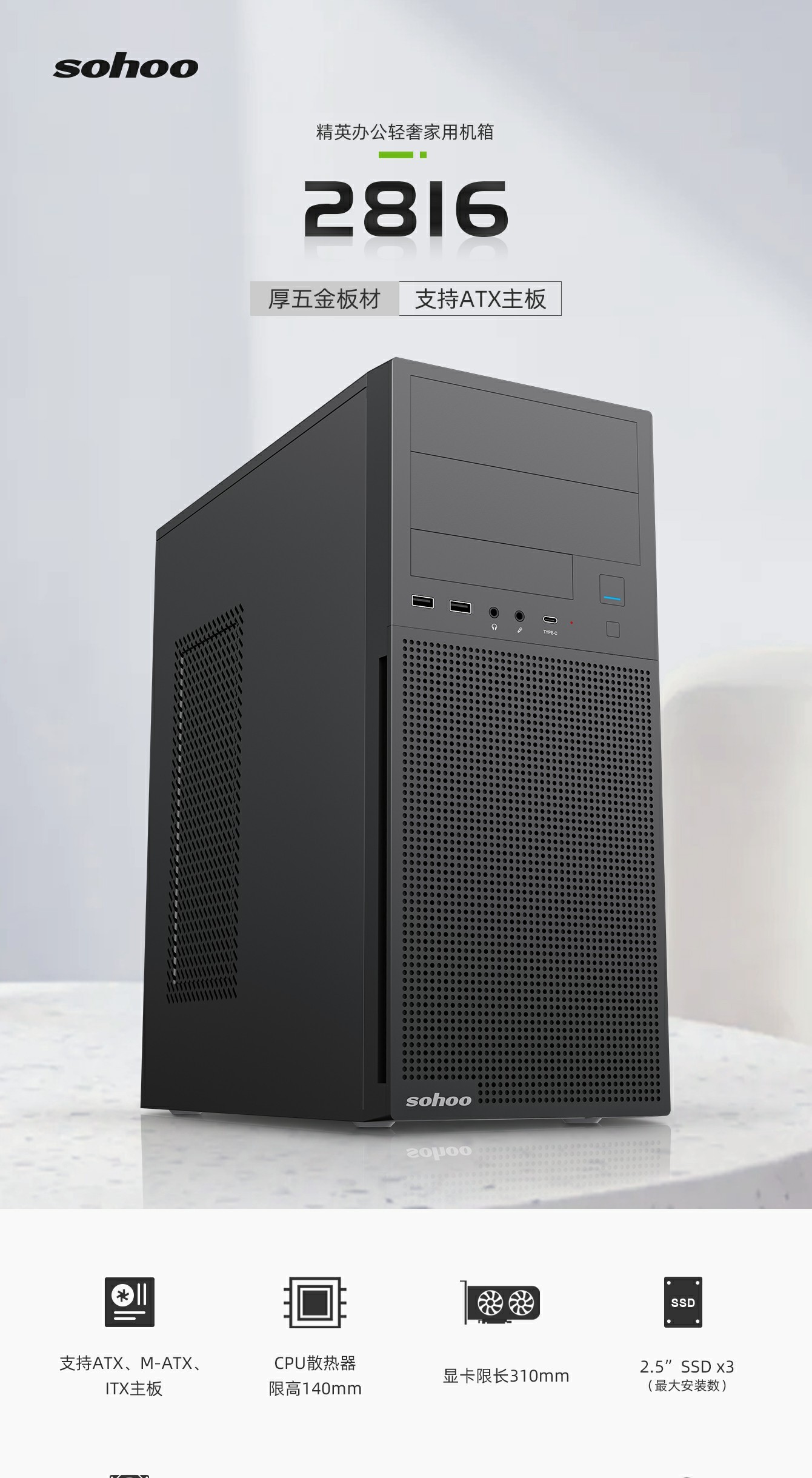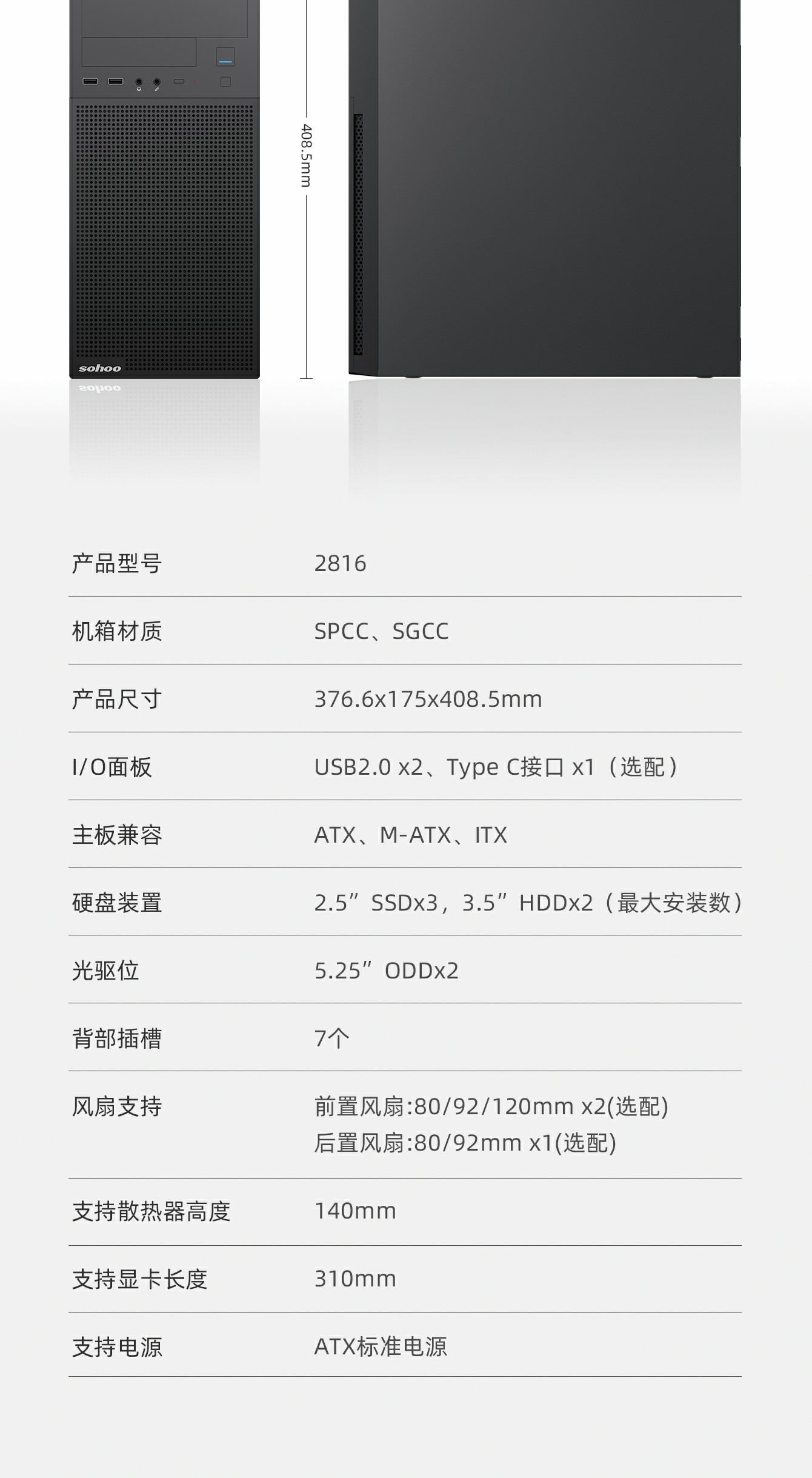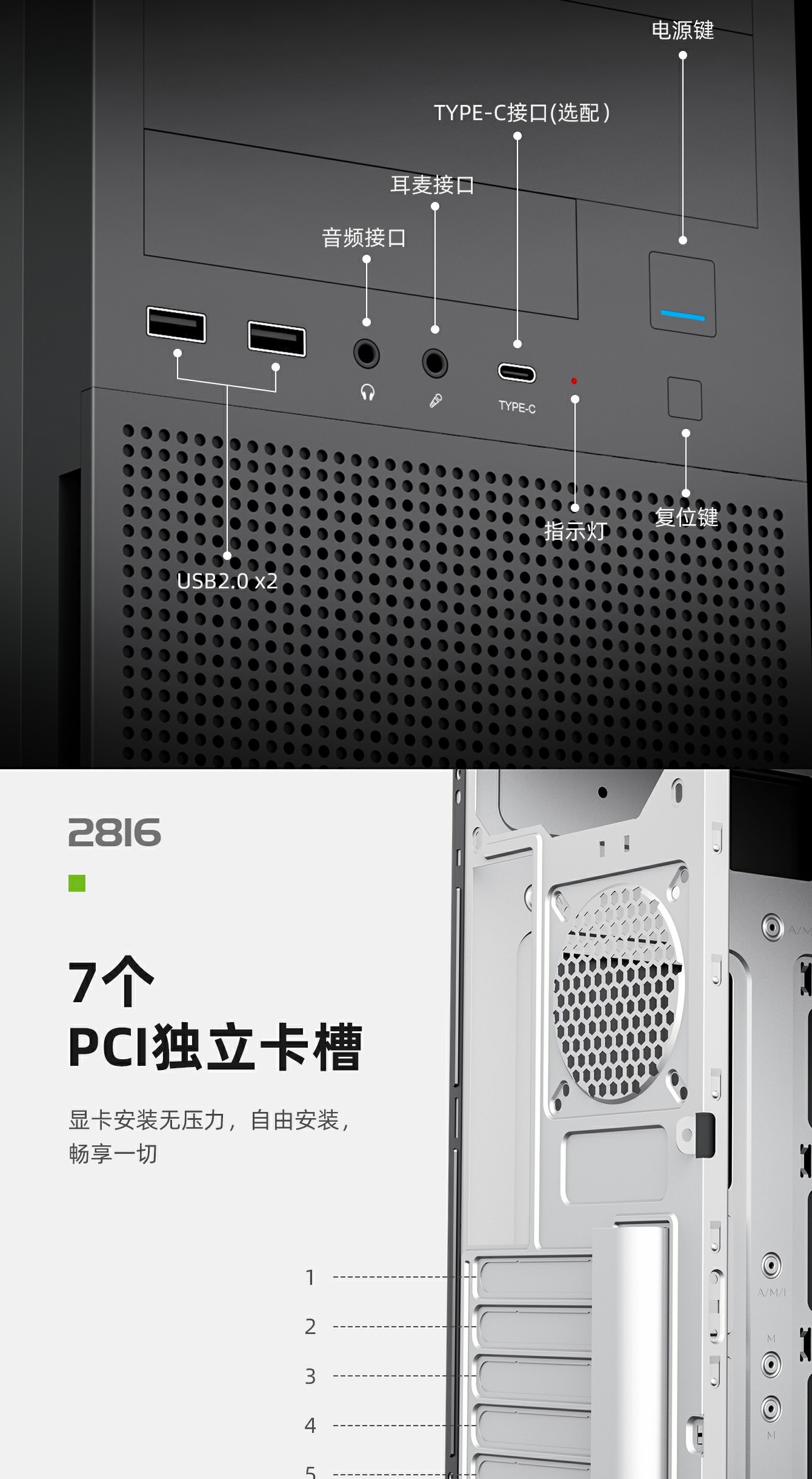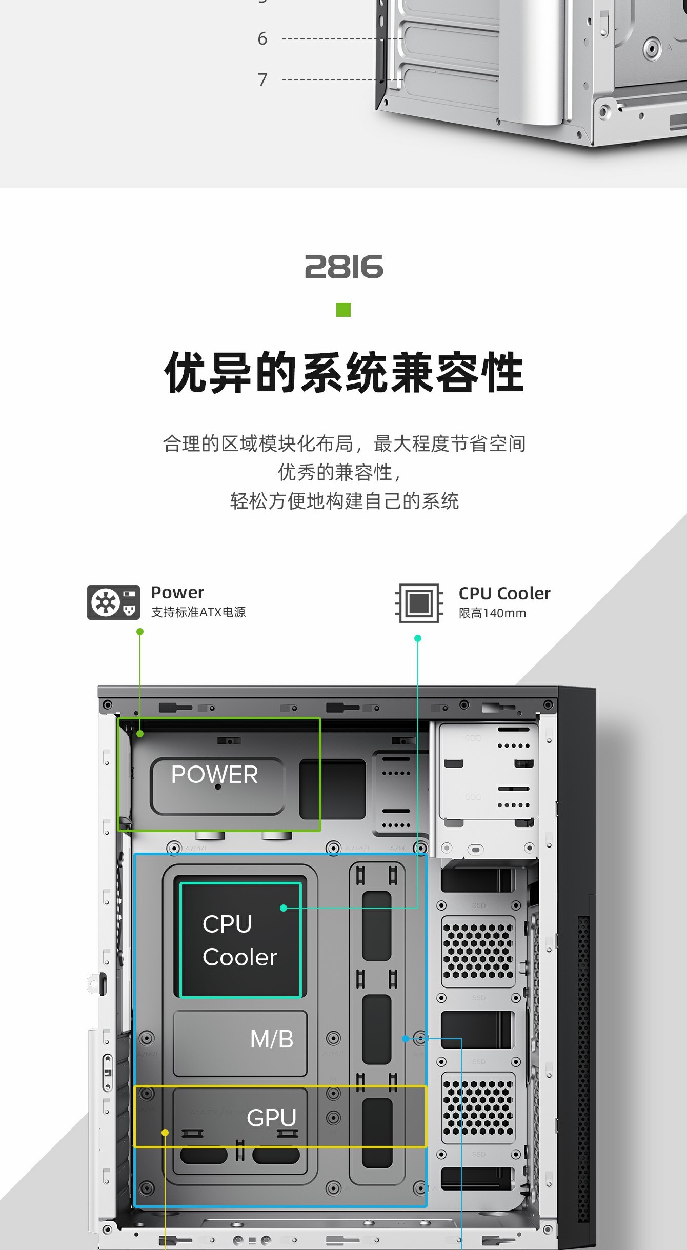 紧凑设计,支持ATX/MATX/ITX主板和经典顶置ATX电源位