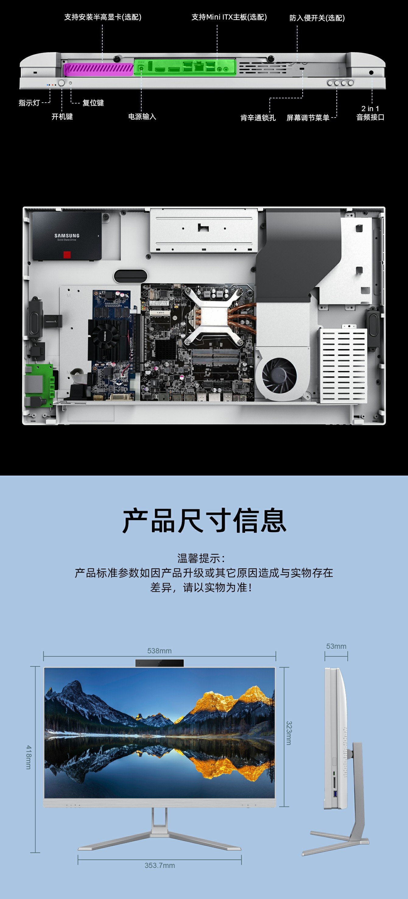 可调节支架:屏幕角度调节-5度至25度,上调高度22mm*2两个档位;