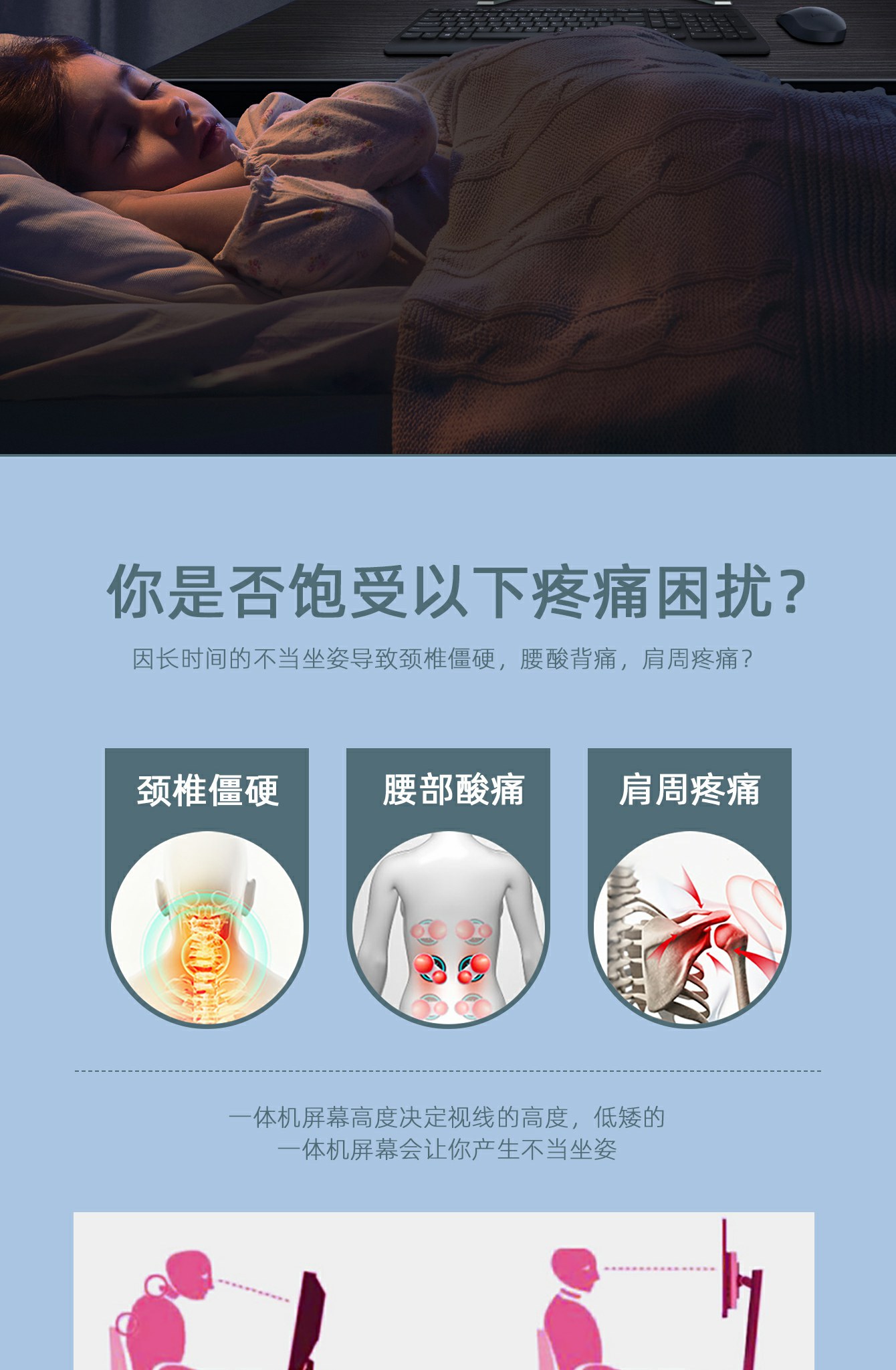 3.可调节支架:屏幕角度调节-5度至25度,上调高度22mm*2两个档位